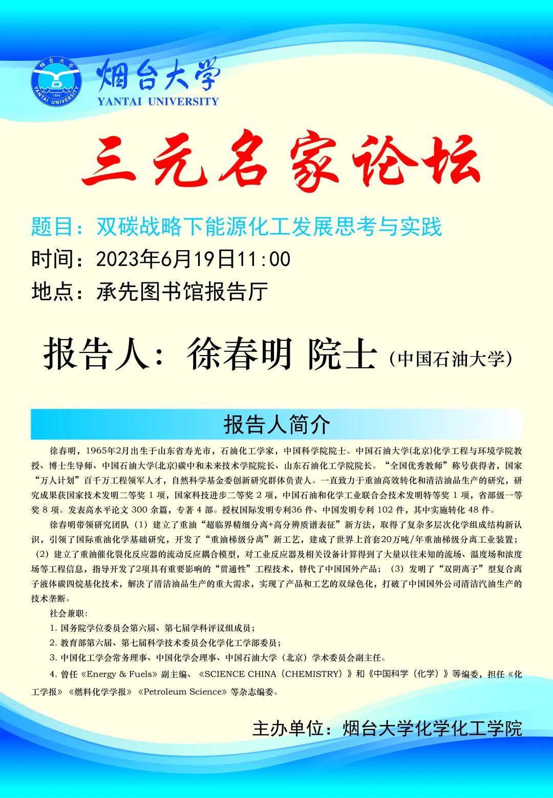 学术讲座 | 徐春明院士莅临色情小说 讲座预告