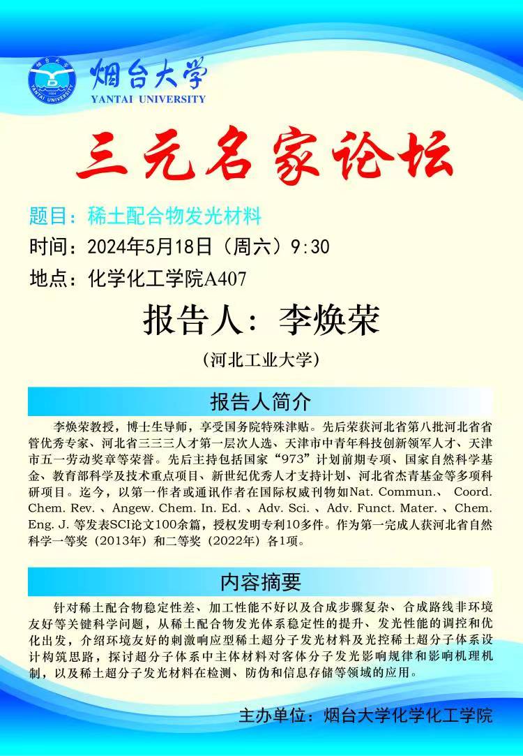 三元名家论坛|李焕荣教授讲座预告