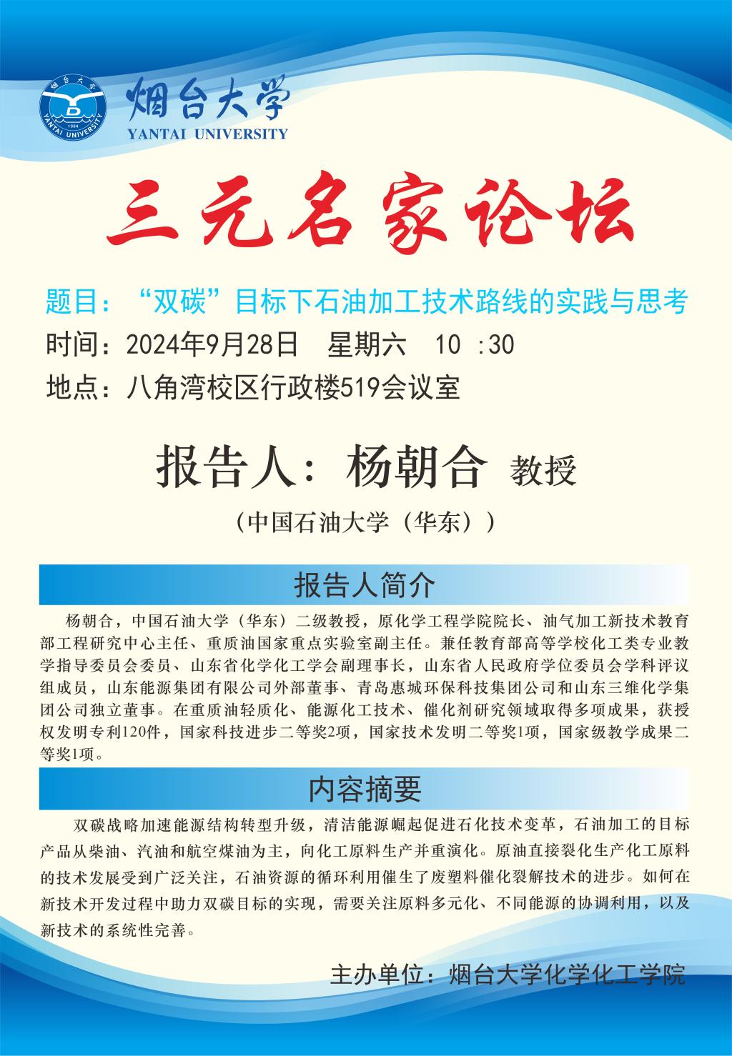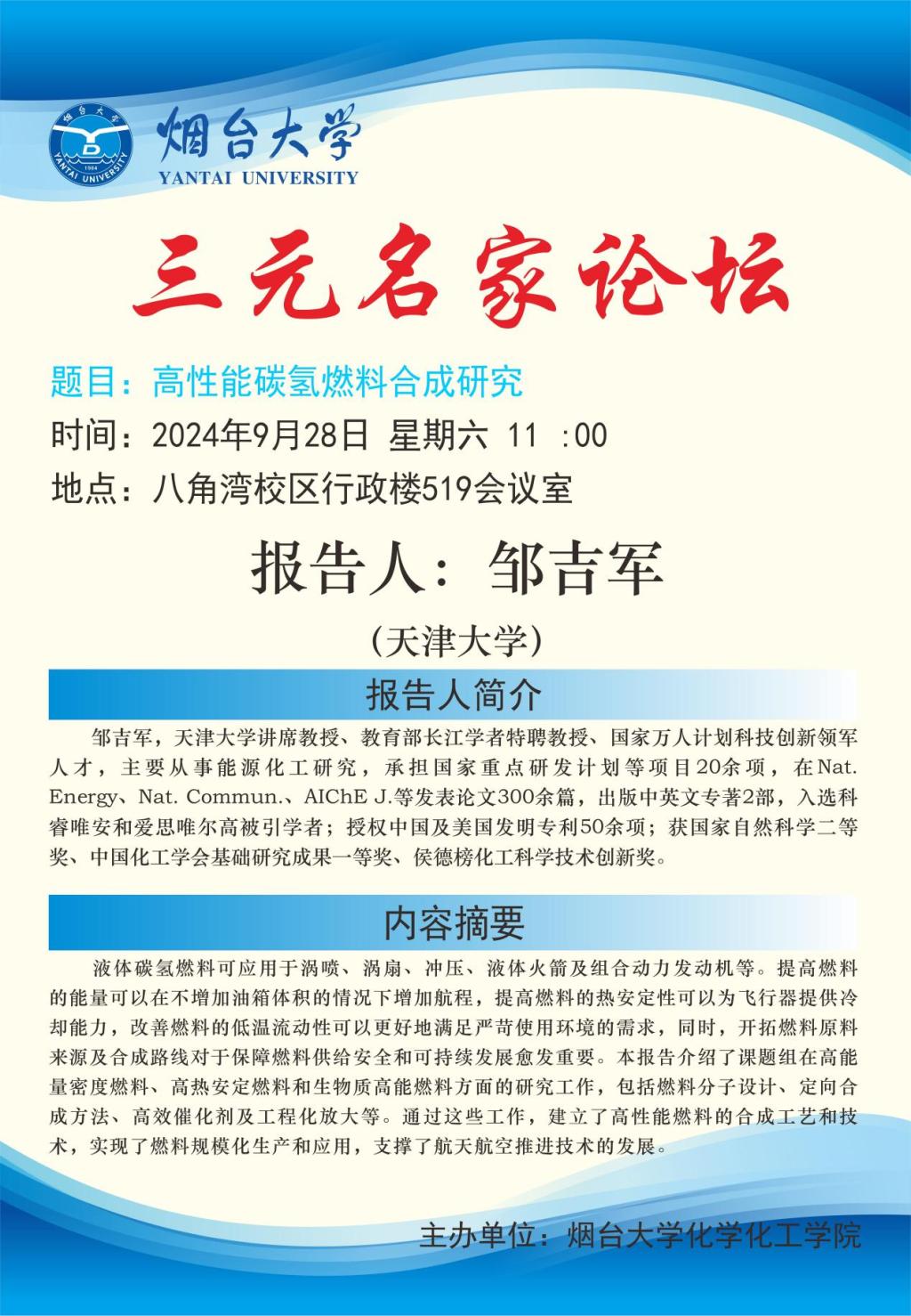 “庆祝建校四十年”系列学术活动之三元名家论坛:高性能碳氢燃料合成研究