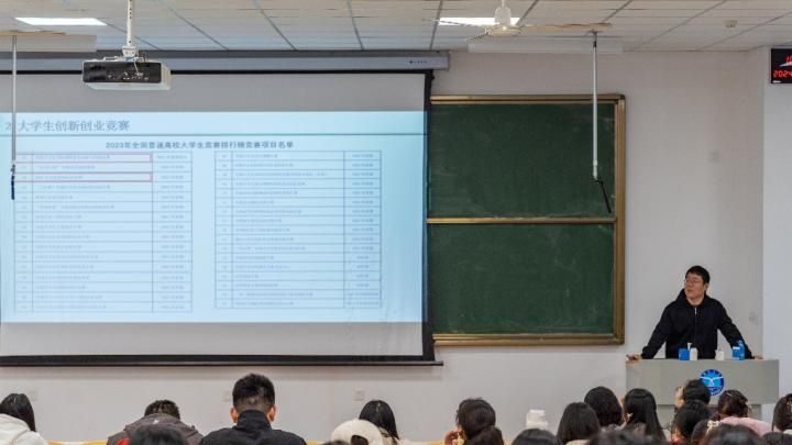 报告结束后,徐文龙副教授针对大学生创新创业竞赛,分享了参与竞赛的经验,从如何选题、团队组建、学生管理等方面,与师生进行了交流。徐文龙副教授表示有付出才会有回报,主动才会进步。