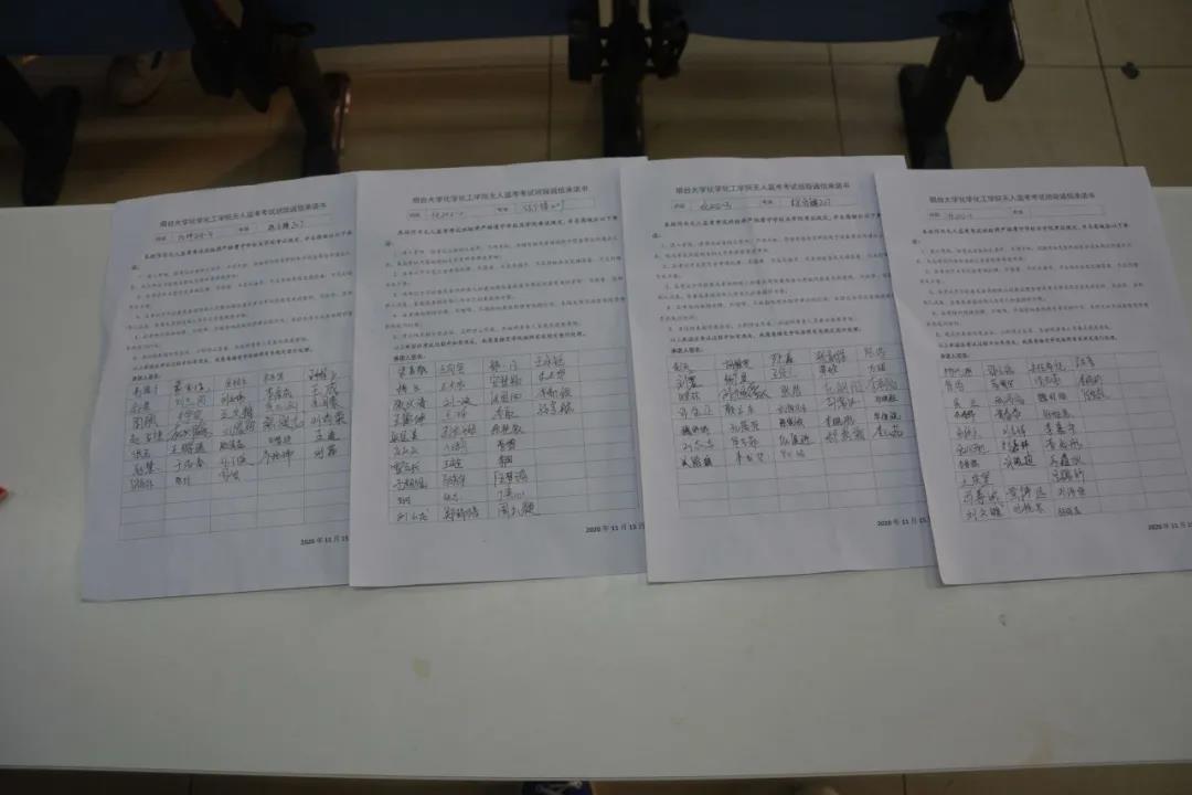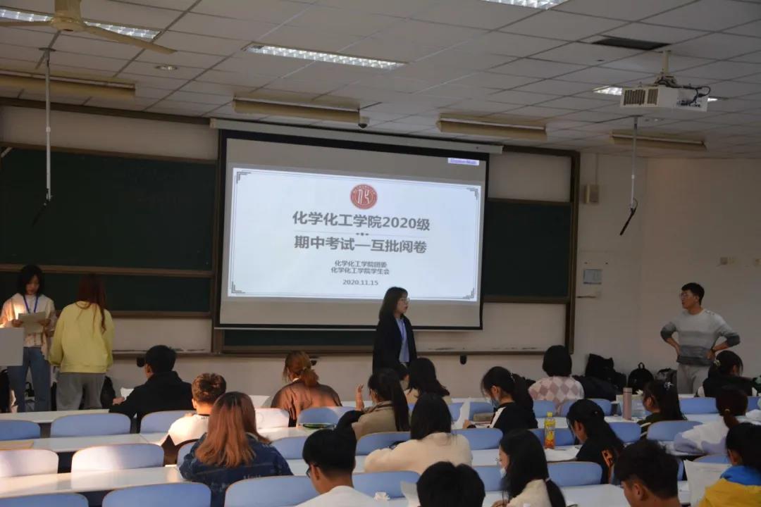 考试结束后,考生现场互换阅卷,体现了化院学子对自己负责,对他人负责的态度,展现了化院良好的学风和精神风貌。