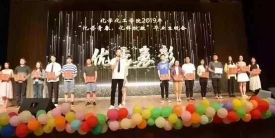 团委书记朱兴老师,院党委书记段志国老师,老院长任万忠老师,海洋学院党委副书记杜德省老师,院党委副书记胡大鹏老师,副院长李文佐老师、李庆忠老师、赵玉潮老师,化院19届毕业班全体导师及全体辅导员老师,19届全体毕业生及其他年级学生共赏本次晚会。