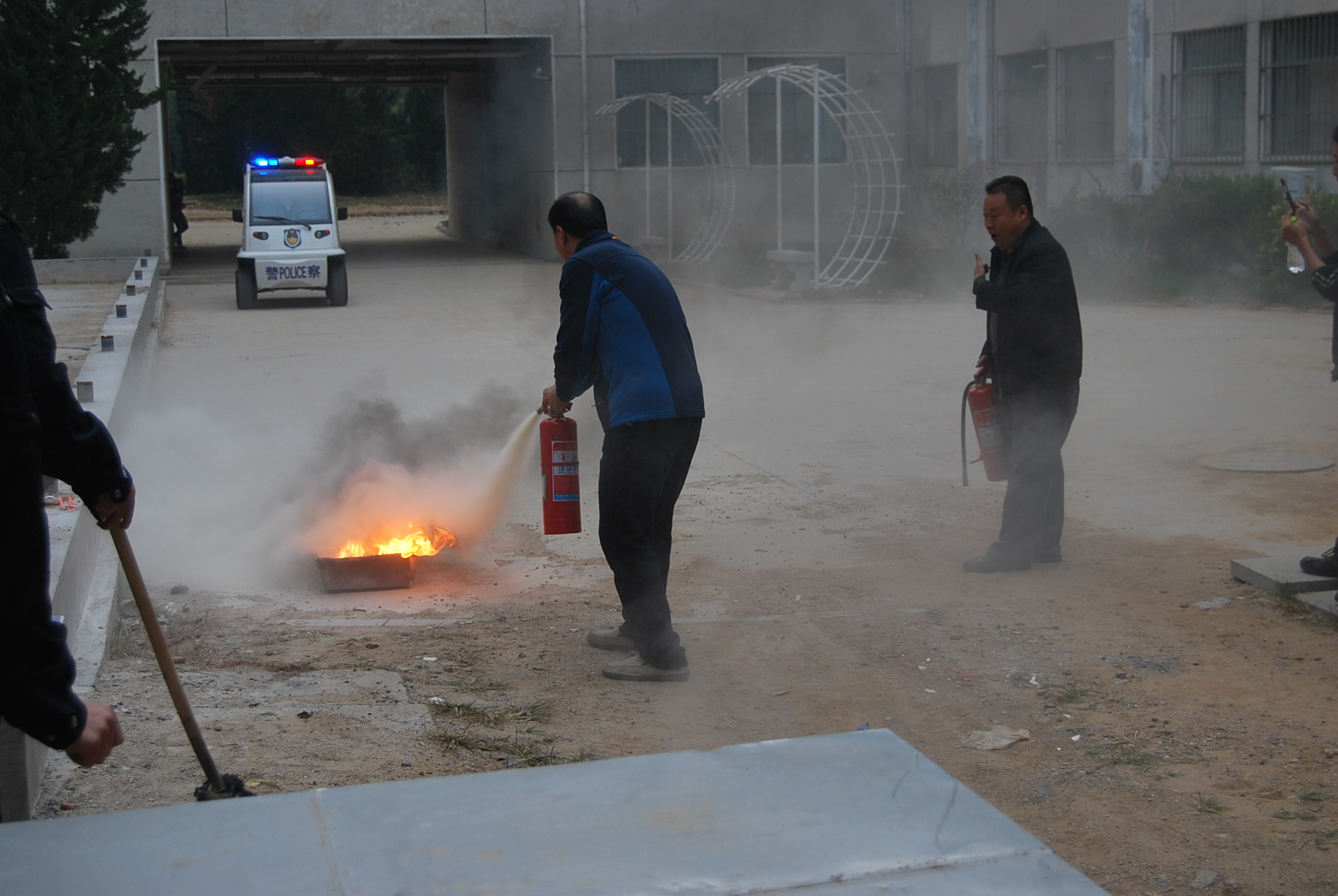 下午三点半,保卫处和两个学院有关人员陆续就位,保卫处赵利江处长检查了一楼出口等重要位置,并对个别出口通道依然存在杂物问题提出批评,责成尽快整改。下午四点,首先进行灭火演练。演练初始,保卫处安全科科长胡新洪同志就火灾基本常识和灭火器的使用方法这两个方面做了简要的介绍和示范,他强调,每个人都要提高消防安全“四个能力”:检查消防火灾安全能力、组织扑救初起火灾能力、组织人员疏散逃生能力和消防宣传教育培训能力。在胡科长就干粉灭火器和二氧化碳灭火器的使用方法进行简要叙述并加以示范后,在场的约