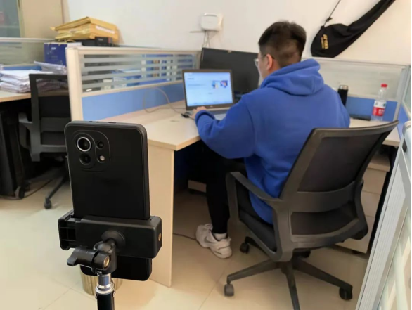 由于教室数量有限,“中国好室友”纷纷上线营业,为准备复试的同学在宿舍中营造更好的复试环境,更是对宿舍进行临时改造,克服困难,利用宿舍空闲区域,更是清空书桌,拿出手机临时搭建摄像头和考研复试专用桌。