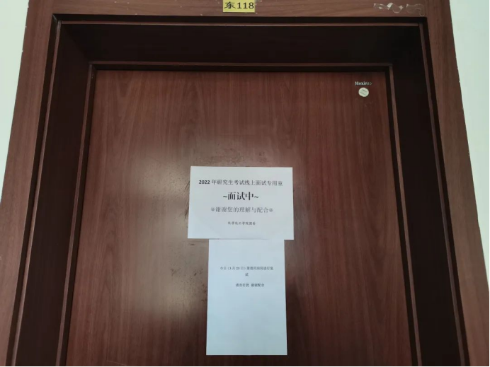 疫情当下,学院为保证考研学生复试便利,特将化东118、119、120、216、220、221、223、320、321、322、226提供给考生作为复试场所。同时,学院也在学校范围内为复试考生积极争取了8间办公场所作为复试教室。