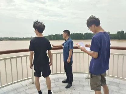 黄河槐荫段河道全长14.25公里,堤防长度24.281公里,从2003年开始,黄河生态景观线营造工程启动。实践团队到黄河河务局附近,对当地居民进行采访交流并着重了解黄河水质情况。同时,在当地黄河流域进行采样,便于后续检测水质。