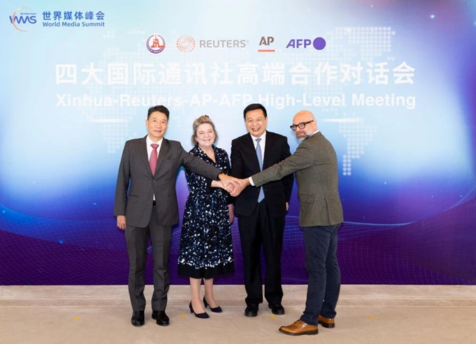 12月1日,在第五届世界媒体峰会开幕前夕,四大国际通讯社(新华社、路透社、美联社、法新社)在北京举行高端合作对话会,四大通讯社的相关负责人就世界传媒业变革背景下的交流与合作展开探讨,四大通讯社负责人的交流向世界传递着合作、应变、担当的积极信号。