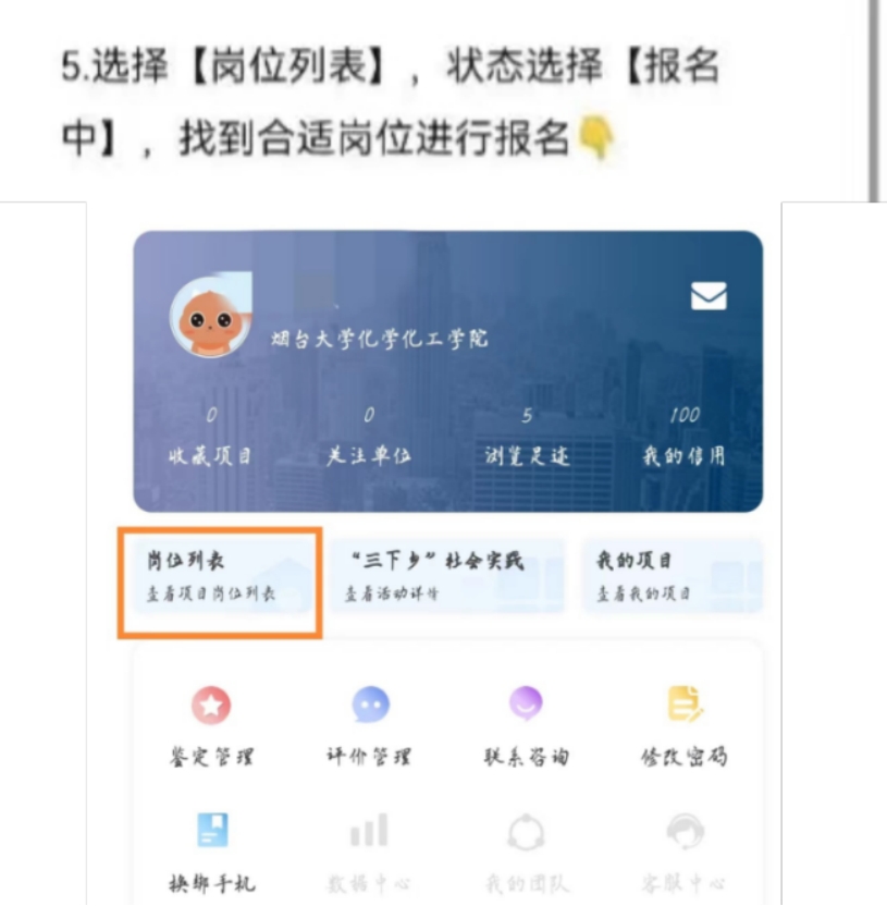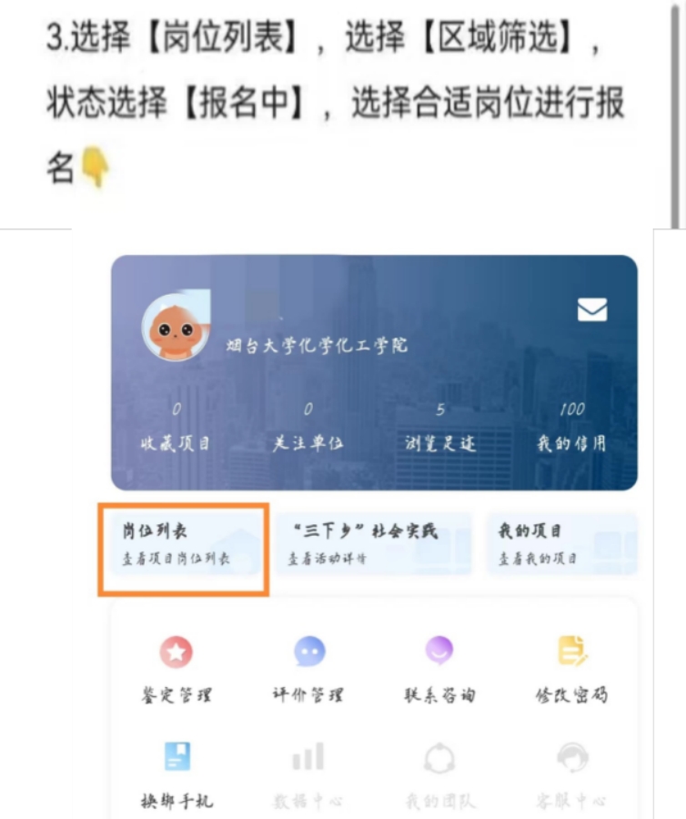 下载【“到梦空间”APP】→第一次登录时选择【激活/注册账号】→选择【激活账号】(学生信息前期已经导入)→进入APP页面点击下面最左侧本校→点击【返家乡】选项→选择【岗位列表】→状态选择【报名中】,找到相关岗位并进行报名;若不是第一次登录,则输入账号密码后重复上述操作。