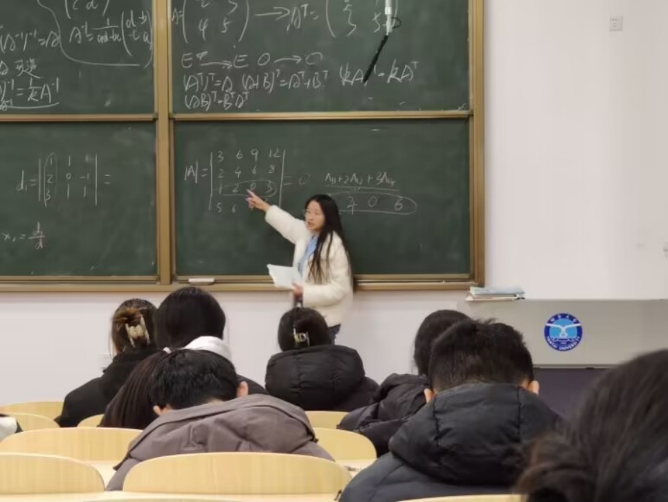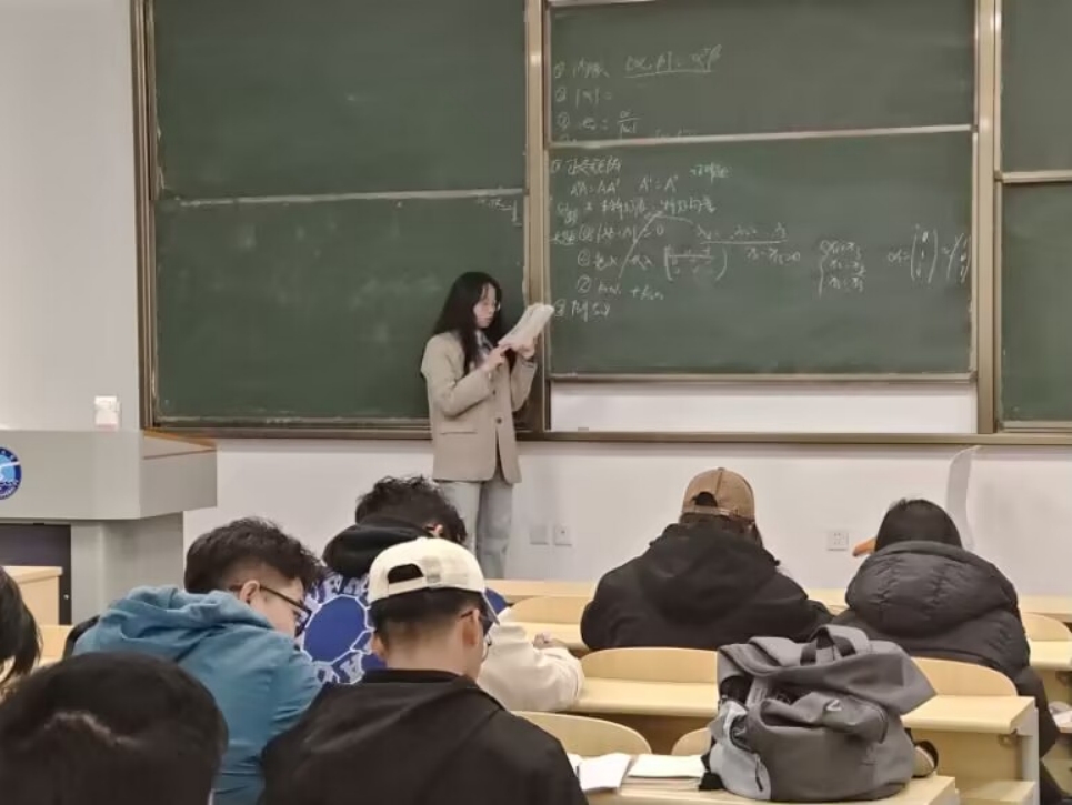 图为学生讲师应221-3班公钰涵讲授线代课。
