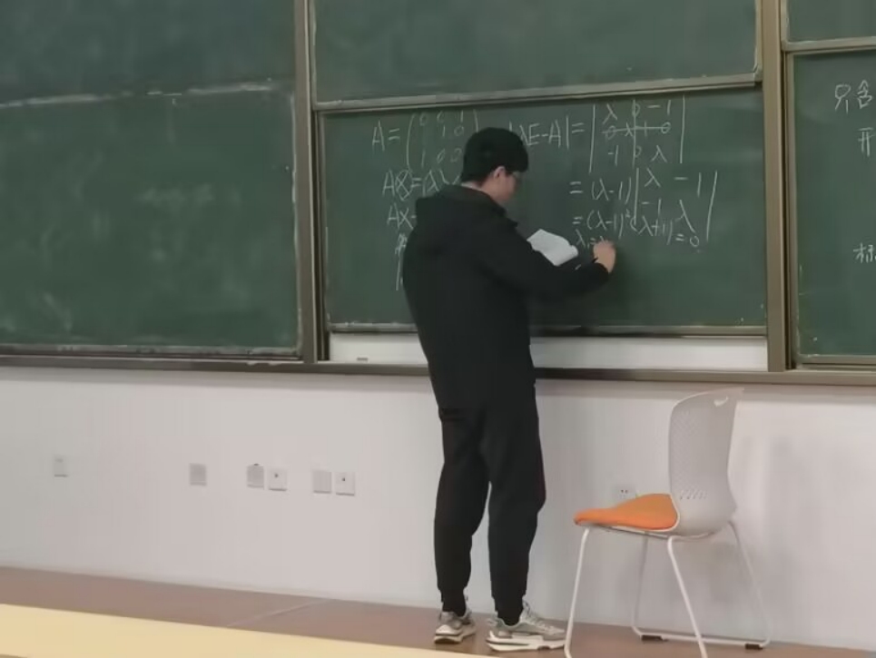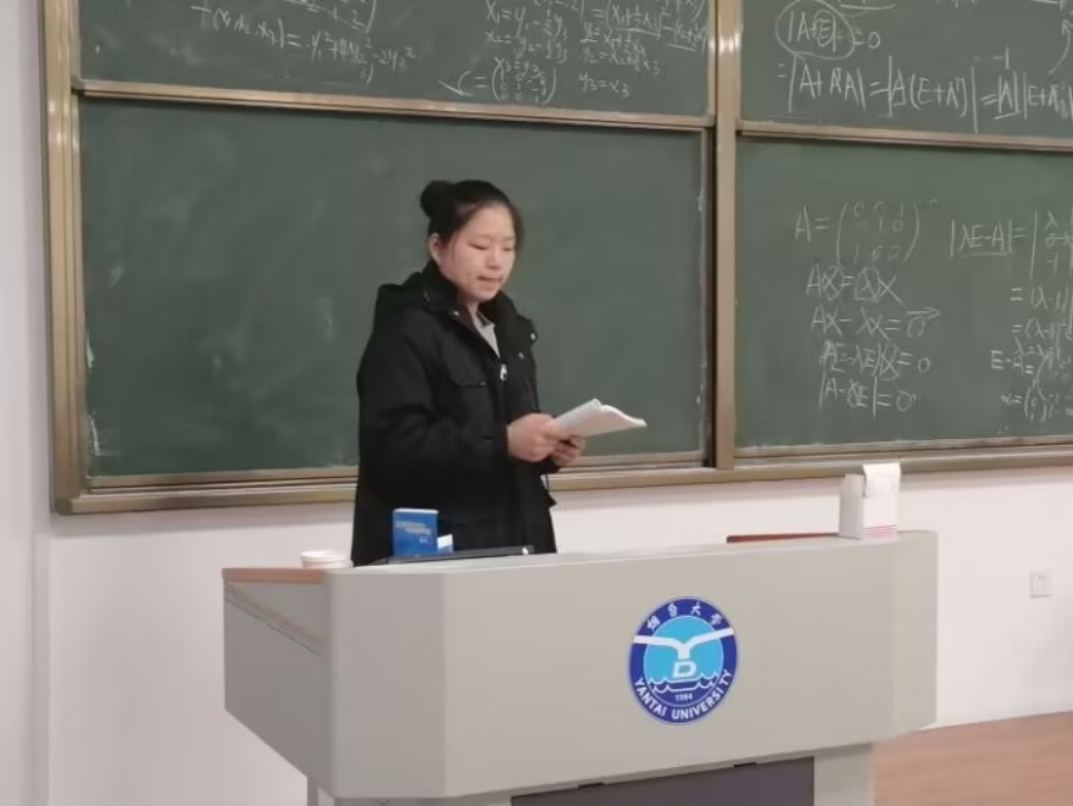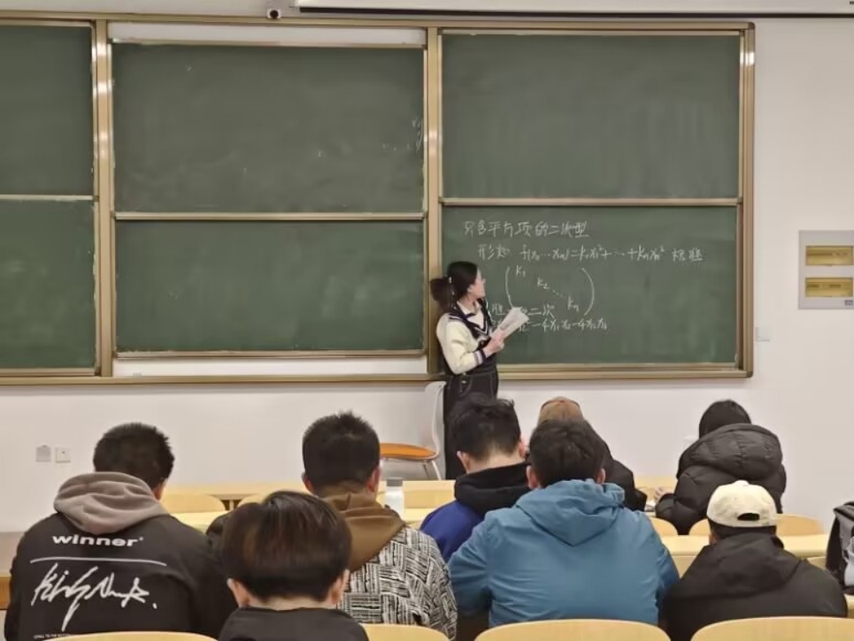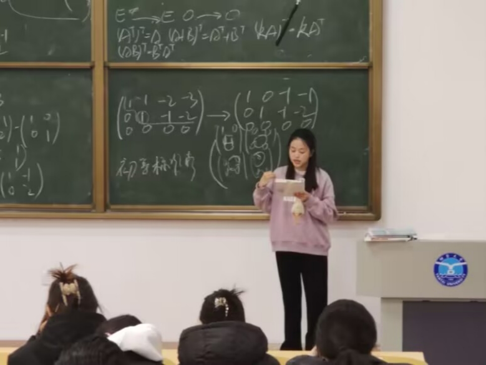 图为学生讲师化222-3班满梦叶讲授线性代数课。