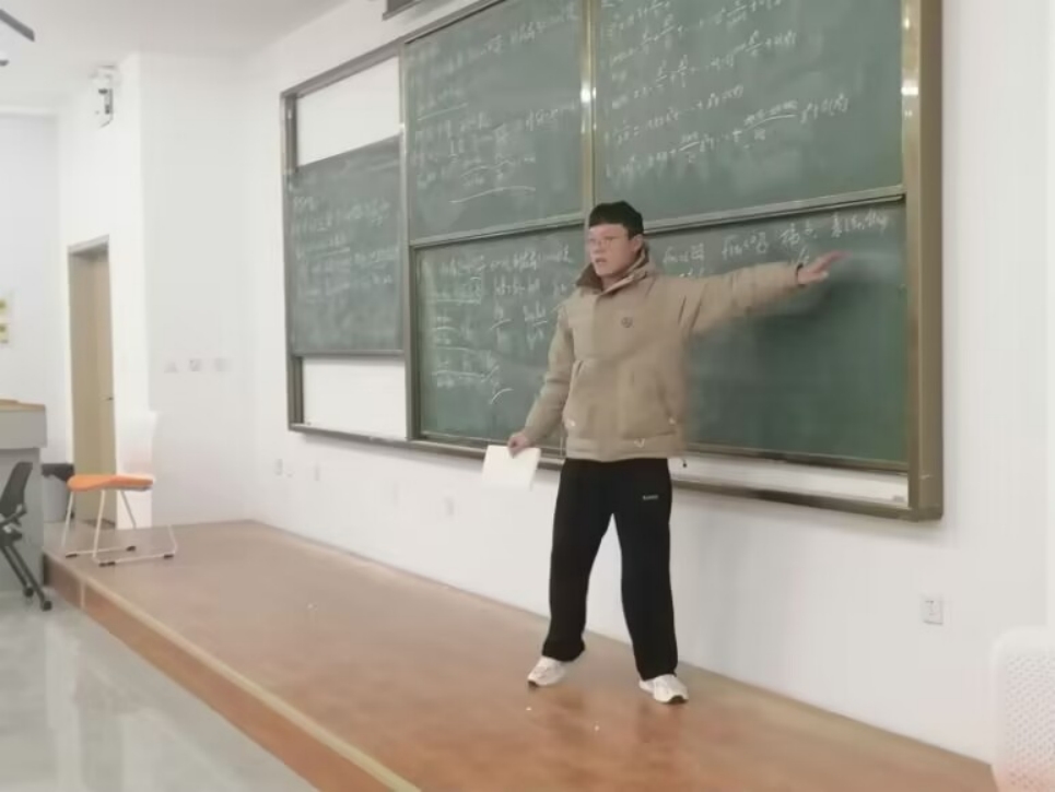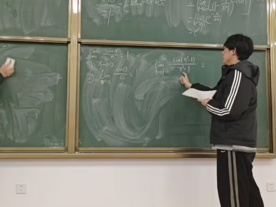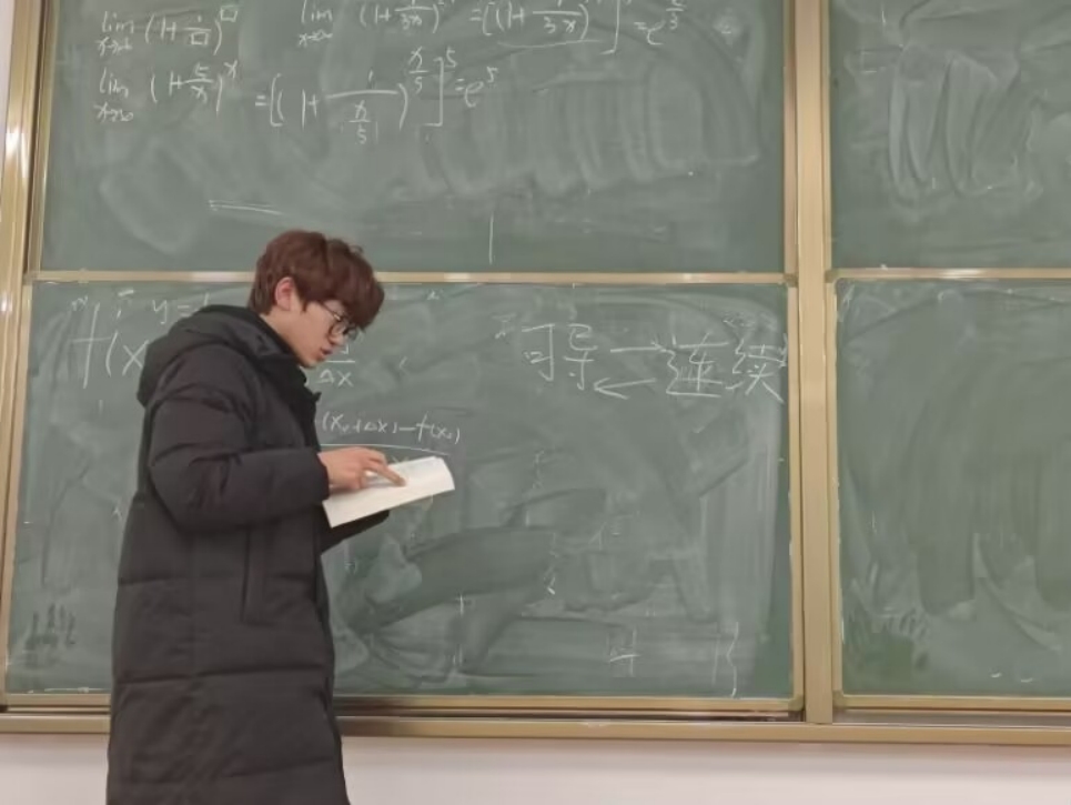 图为学生讲师化232-3班路双豪同学在讲高数。