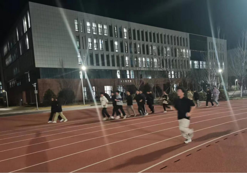 体育锻炼队的“化小水”们在进行组队的体测长跑项目帮扶。