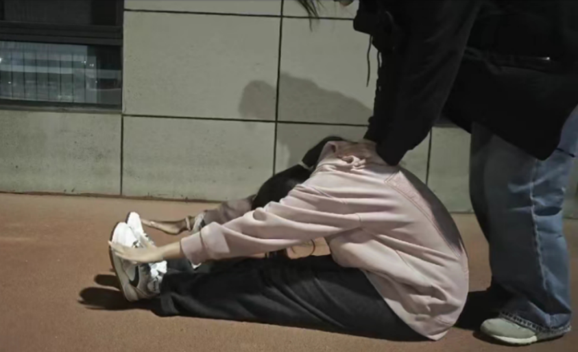 体育锻炼队的“化小水”们在进行体测仰卧起坐项目帮扶。