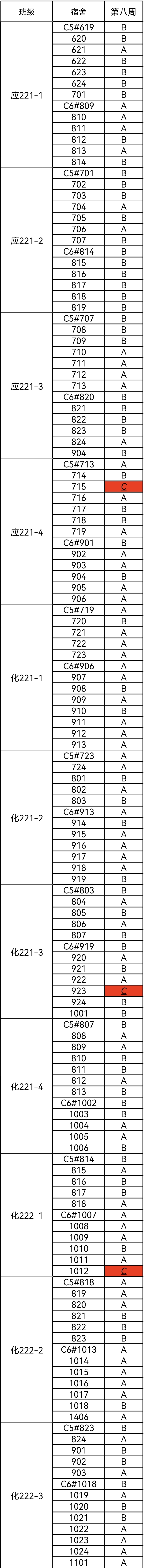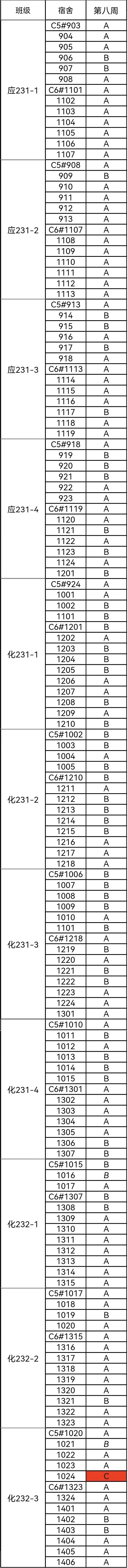 第八周的宿舍评比结果已经出来啦