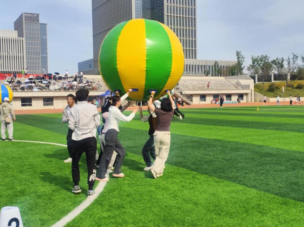 “化小水”们正在进行“运转乾坤”趣味比赛。