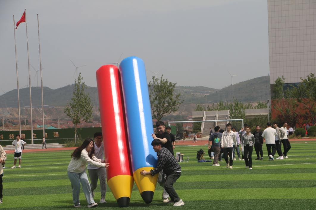 化院老师们在进行“毛毛虫”趣味比赛。