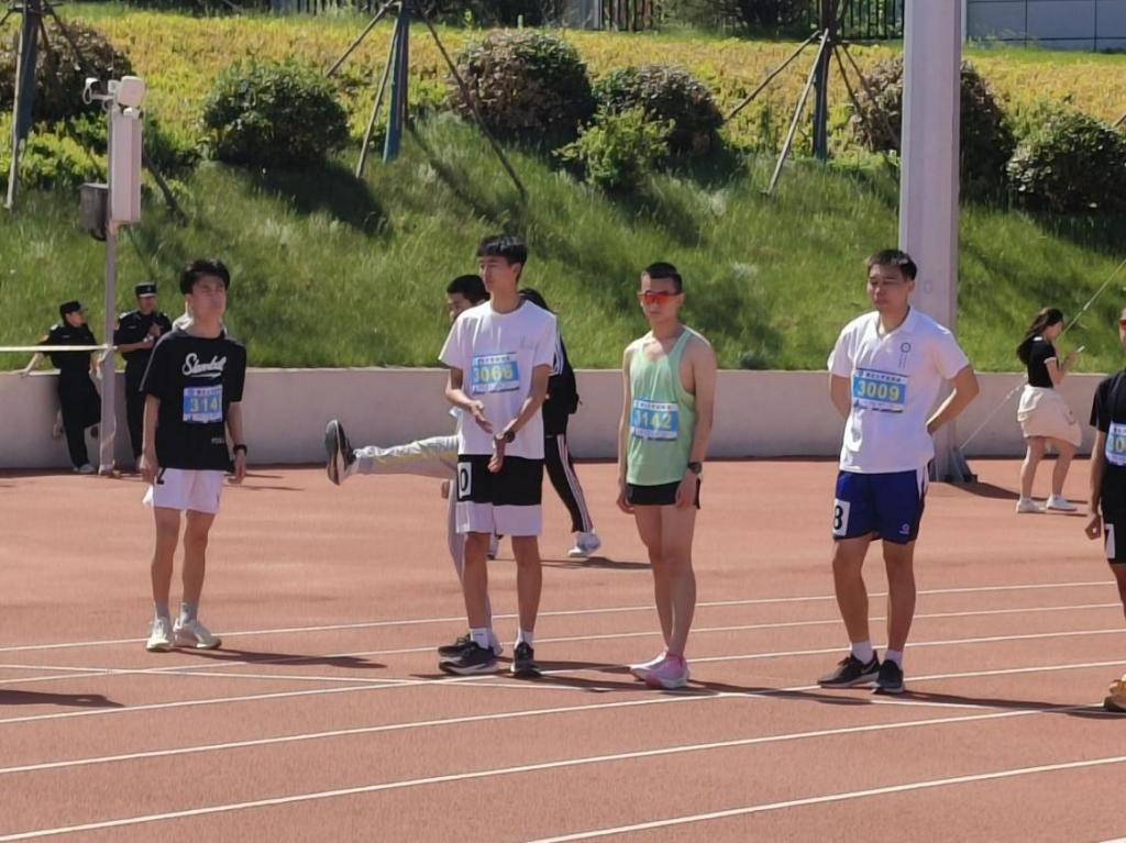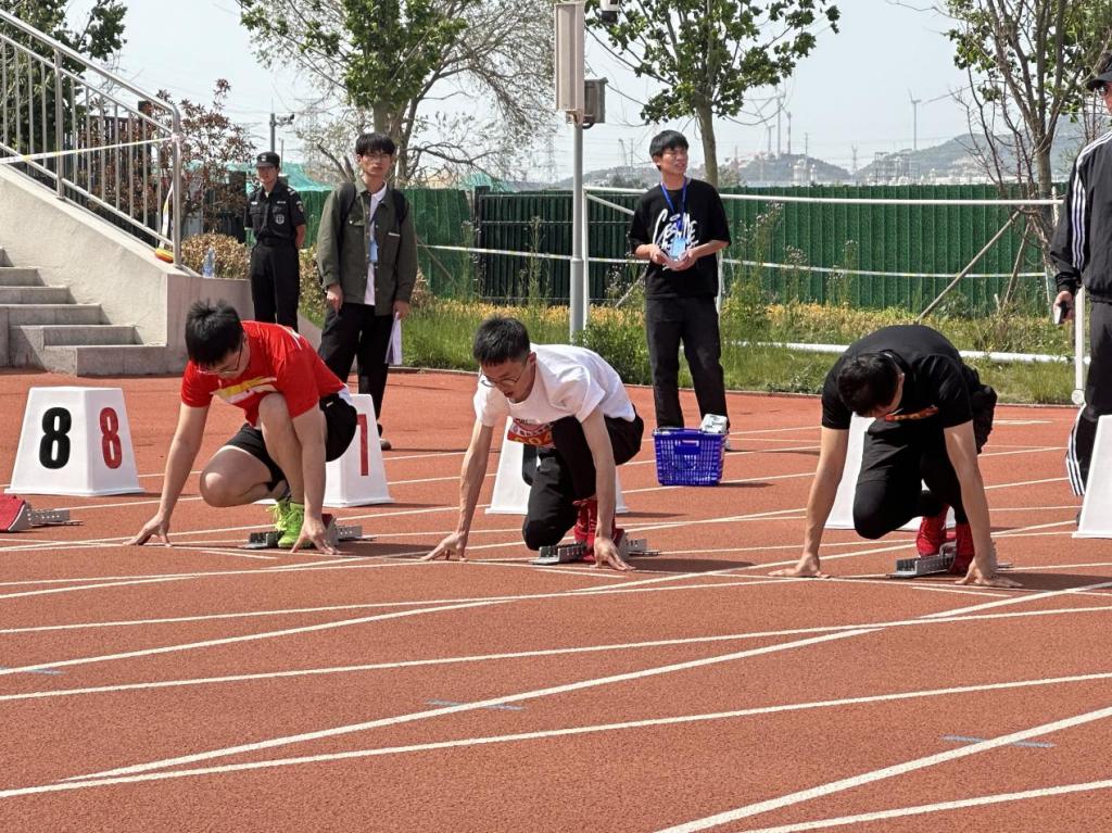 翟东昌老师正在进行男子100米决赛比赛。