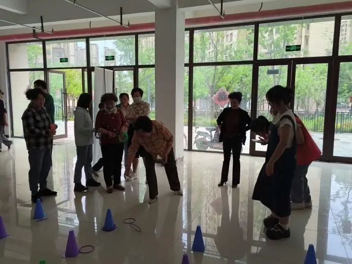 活动室的另一处,一场套圈游戏正在上演,志愿者们与社区的老人们共同参与这场充满童趣的活动,笑声和欢呼声此起彼伏,温暖了整个空间。