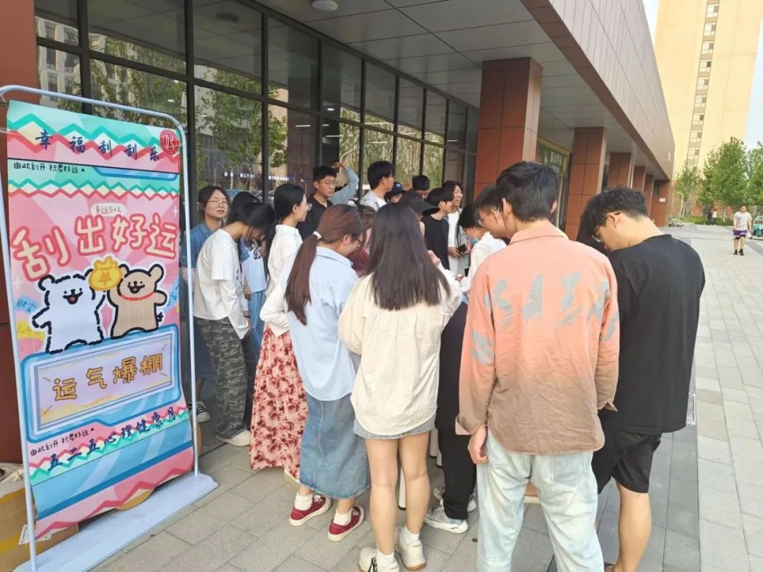 一张惊喜卡片,一份幸福感悟。5月18日下午5点至7点,化院学生心理协会在八角湾校区梅园餐厅南侧举办了“幸福刮刮乐”主题活动。路过的同学们在工作人员的引导下,领取一张张“任务卡”,刮开卡片,完成正话反说、立水瓶、抛硬币、听歌识曲、偏旁组词等各种小游戏,并收获了精心准备的小礼品。虽然卡片数额有限,但并不影响同学们热情的心,大家在轻松愉快的氛围中完成任务,运用合理、有效的方式缓解压力,增强了心灵能量。
