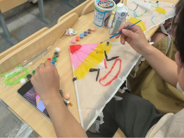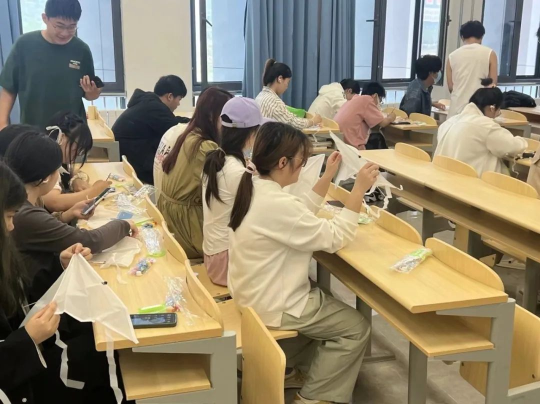 八角湾校区一教402教室内,同学们化身“小画家”,借助画笔得到温暖治愈的力量。在填涂风筝的过程中,同学们既感受到了生命色彩之美,又舒缓了自己的压力,增强了对未来的信心及对生活的热爱。最后,同学们带着对未来的美好祝愿,亲手将自己所绘的风筝放飞蓝天。