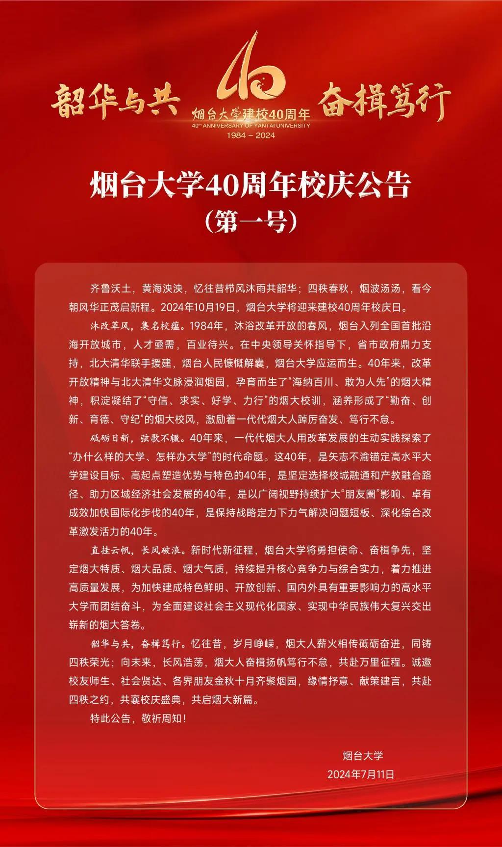 建校、建院四十年丨色情小说 40周年校庆公告(第一号)