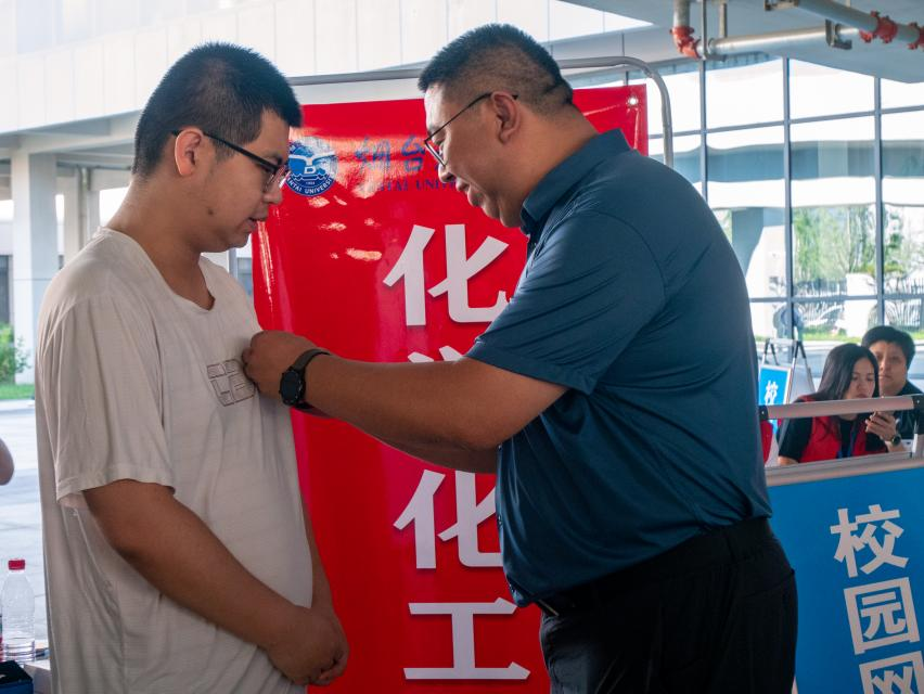 此外,在迎新现场,院领导还亲自为“化小水”们佩戴院徽,祝贺他们正式成为烟大化院大家庭中的一员。