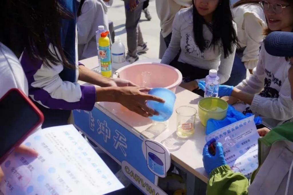 参加完开幕仪式后,现场有近几百名学生参加妙趣横生的化学嘉年华活动。