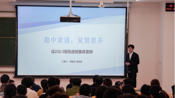 教师代表、化221-3班导师杨凯旋:在答辩过程中,我被各班级答辩代表们所展现出的认真且负责的态度深深打动。他们积极呈现各自班级精心筹备的答辩材料,从日常管理、学风建设到活动组织等多个层面,进行了全面且细致的阐述,充分展示了班级独特文化与建设成果。这些展示不仅让我领略到了各个班级的独特风采,更让我深切感受到了学生们对班级荣誉的珍视与追求。通过此次先进班集体答辩,我们得以更加深入地了解各个班级的具体情况与需求,进而为班级建设提供更加有针对性的指导与支持,从而有力推动学院形成更加积极向上、和谐融洽的班级氛围与学风。我相信,在全体师生的共同努力下,我们的班级建设与学风建设必将取得更加显著的成效。