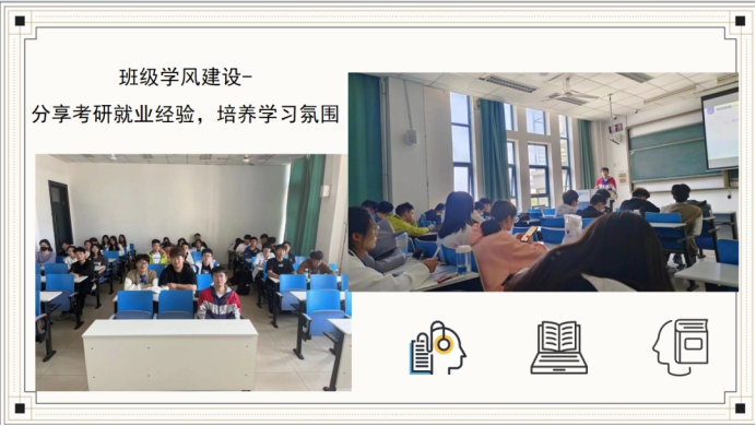 化222-2班,一个充满活力与和谐的集体,通过精心制定的班规,确保了班级管理的有序与高效,为每位同学营造了一个公平、公正的学习环境。在班级学风建设方面,化222-2班更是独树一帜,班级学习成绩稳步提升,同学们相互激励,共同进步。为了深化学习氛围,班级定期举办考研就业经验分享会,学长学姐们倾囊相授,为即将踏上人生新征程的同学们指明了方向。同时,化222-2班深知心理健康的重要性,班级密切关注每位同学的心理状态,通过组织心理健康讲座、开展心理辅导等活动,有效缓解了同学们的学习压力,增强了班级的凝聚力。此外,班级还致力于培养宿舍的良好氛围,倡导文明、友爱、互助的宿舍文化,让每一位同学都能感受到家的温暖。