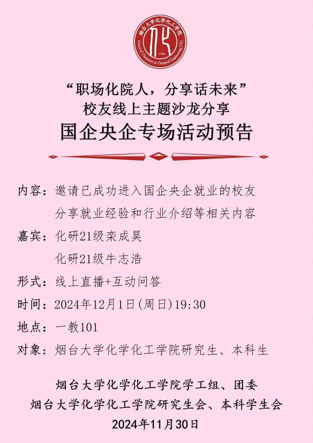 “化小水”的就业服务 | “职场化院人,分享话未来”校友线上主题沙龙分享之国企央企专场活动预告