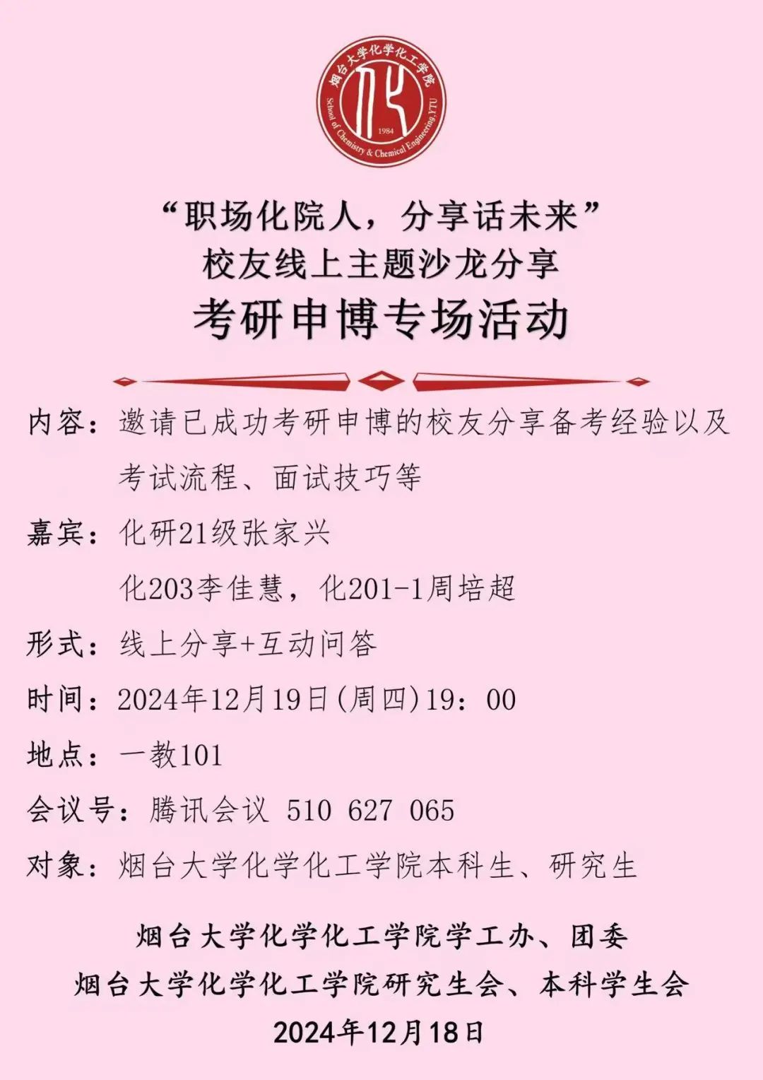 “化小水”的就业服务 | “职场化院人,分享话未来”校友线上主题沙龙分享考研申博专场活动预告