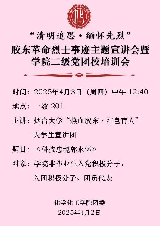 “清明追思·缅怀先烈” | 胶东革命烈士事迹主题宣讲会暨学院二级党团校培训会预告