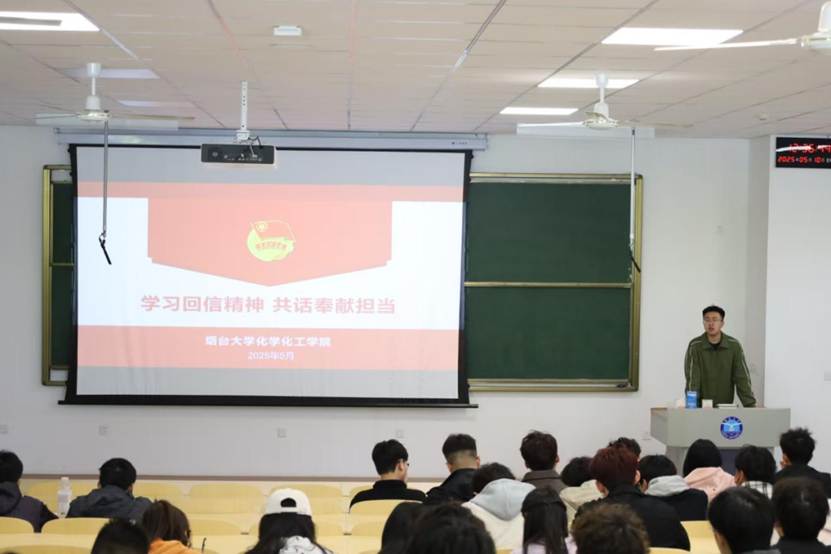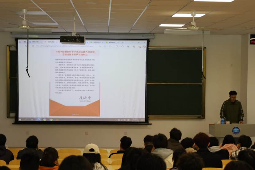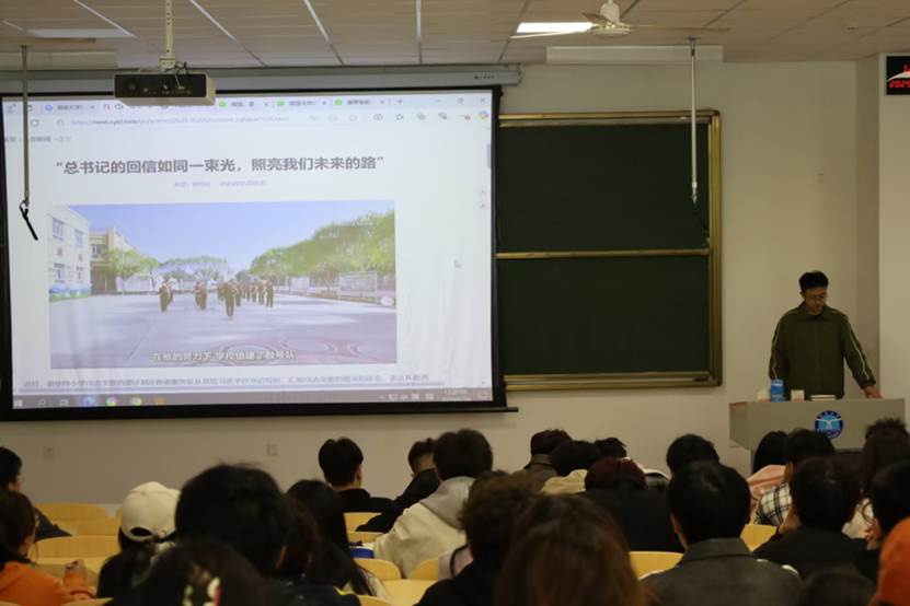 团委于2025年5月10日在八角湾校区一教102教室共同学习习近平总书记的回信,学院团委副书记刘振兴同学领学。