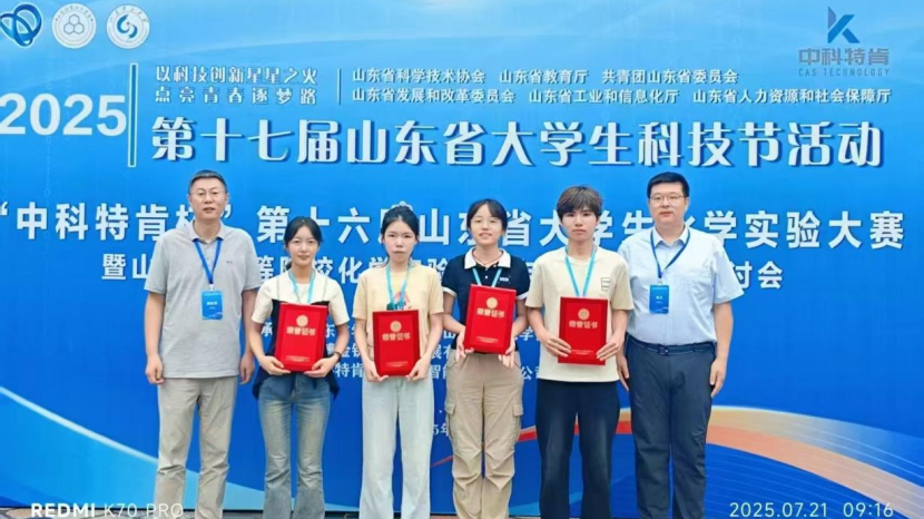 本次大赛是由山东省科学技术协会、山东省教育厅等单位联合主办,山东化学化工学会、山东理工大学共同承办。大赛吸引了来自中国海洋大学、中国石油大学(华东)、青岛大学、青岛科技大学等全省32所高校,共计127名学生参赛。本次大赛严格对标化学实验教学核心要求,分为理论考试(机考)和实验操作考试两部分。理论考试涵盖四大化学实验原理、操作规范、安全环保等知识;实验操作考试设无机化学综合实验和有机化学综合实验两个赛道,全面考察选手的合成、分离提纯、检验表征等综合实践能力。刘义、樊红雷两位指导老师在实验方案设计、操作规范、安全意识及心理调适等方面提供了全方位的指导。