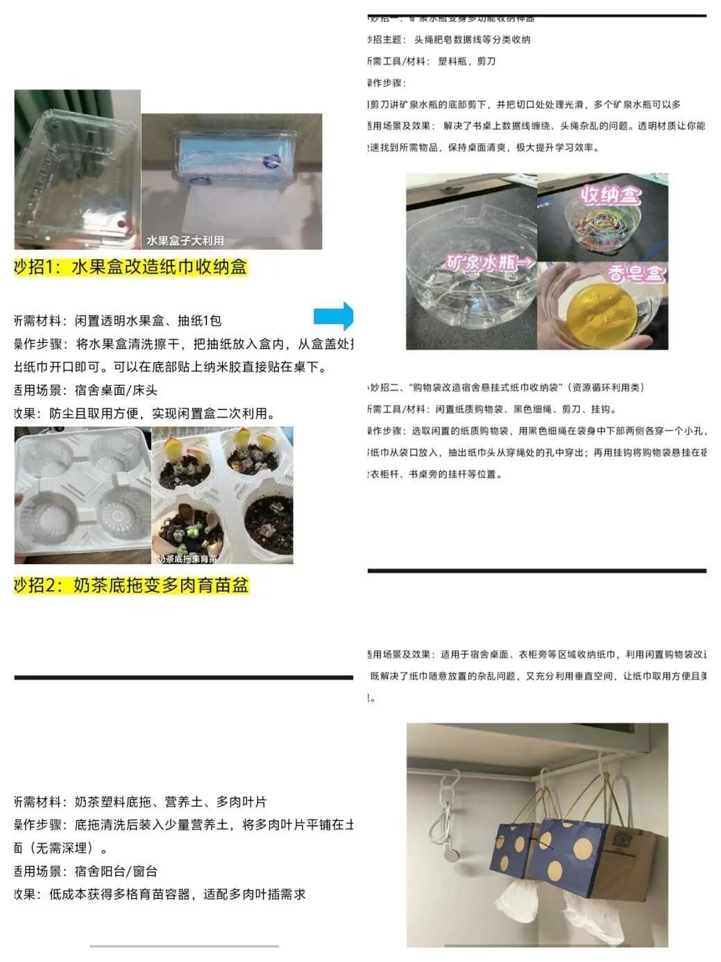 实用的收纳技巧、高效的清洁方法、创意的资源利用,这些小妙招切实解决了宿舍生活难题,展现了学子们的独立生活智慧。