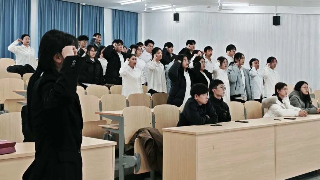 团委在八角湾校区第一教学楼201教室举行2025年下半年新发展团员入团仪式。院团委老师代表、优秀团员代表与30名新团员齐聚一堂,共同见证这一庄严而充满青春信仰的时刻。