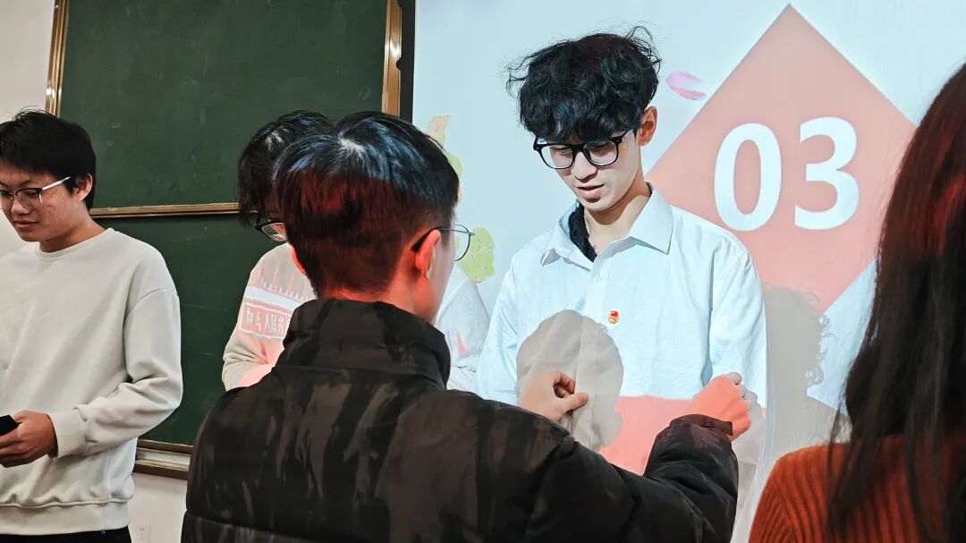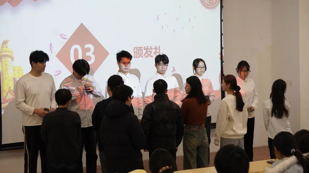 伴随着雄壮激昂的《中华人民共和国国歌》旋律,入团仪式正式拉开帷幕。主持人首先宣读新团员名单,30名青年学子历经团组织多轮考察与培养,正式成为中国共产主义青年团的一员。现场掌声雷动,既是对这份青春荣誉的致敬,更是对青年一代的期许与喝彩。随后,院团委老师依次为新团员佩戴团徽、颁发团员证。熠熠生辉的团徽,是荣誉的彰显,更是责任的重托,标志着30名青年自此迈入人生新的成长征程,正式开启与祖国同向、与时代同行、与理想同频的青春华章。
