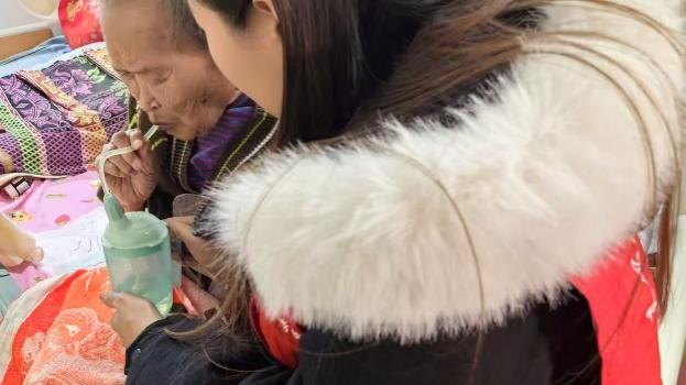 物资送达的是心意,陪伴传递的是真心。志愿者为卧床老人喂水时,会先将吸管杯贴在手腕内侧试温,确认不烫不凉后,才轻轻托起老人的后背,把吸管缓缓送进老人唇边,一边轻声说“慢些喝,不着急”,一边留意着水流速度,时刻注意老人的状态;志愿者在帮老人刮胡子时,会先把电动刮胡刀调至轻柔模式,另一只手轻轻扶住老人的脸颊稳住姿势,握着刮胡刀的手稳而轻,顺着面部轮廓慢慢移动,连唇角、下颌线处细小的胡茬都仔细扫过,刮完还会用温热的毛巾轻轻擦去下巴的碎末。