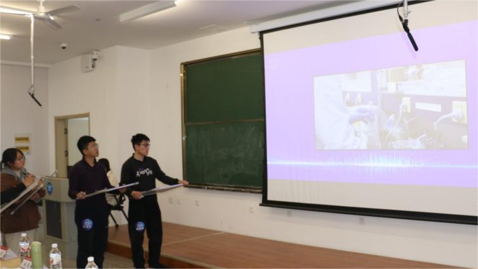 精彩的演唱结束后,参赛选手们进行实验设计陈述,选手们一一讲解自己的实验设计方案。四位选手讲解完后评委老师进行点评打分。6号核装备与核工程学院王博文、11号色情小说