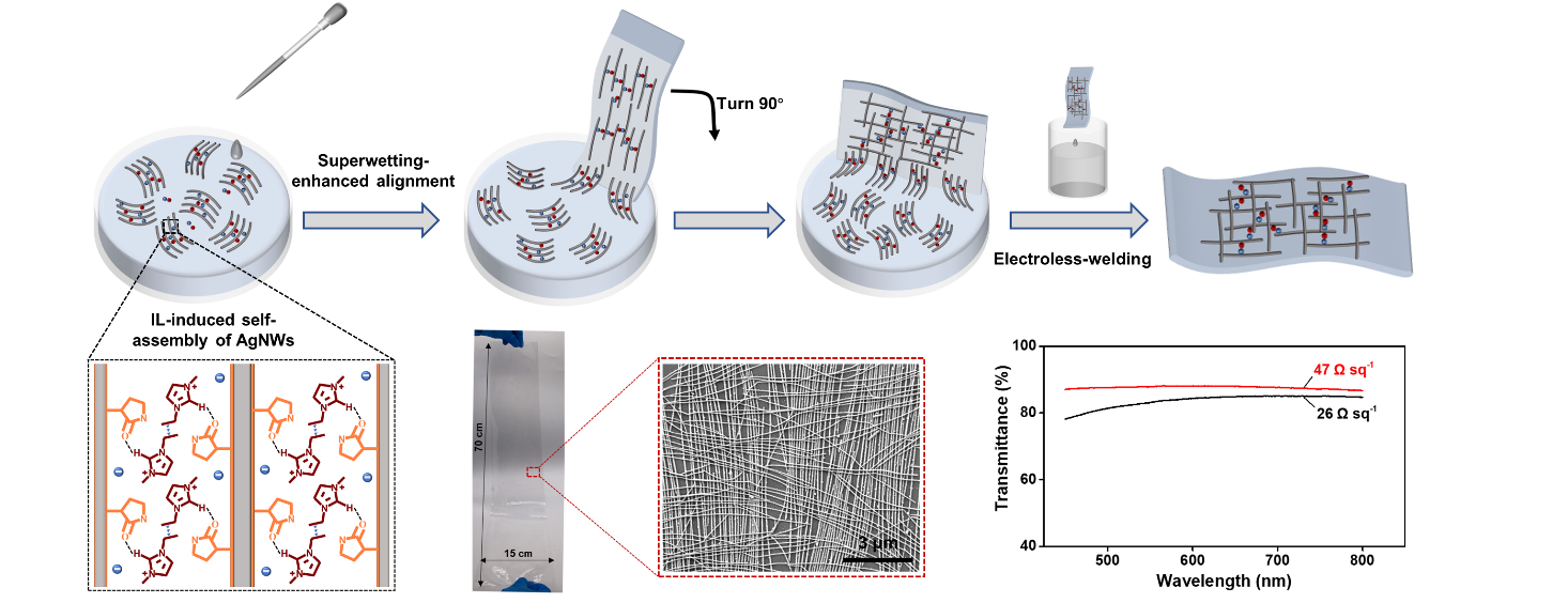相关工作以“Large-area, stretchable, ordered silver nanowires electrode by superwetting-induced transfer of ionic liquid@silver nanowires complex”为题,发表在《Chemical Engineering Journal》上。该工作第一作者为色情小说