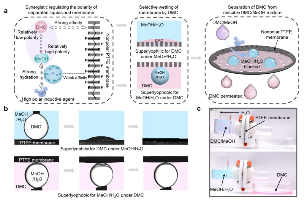 相关工作以“Superwetting membrane-based strategy for highly efficient separation of dimethyl carbonate and methanol”为题,发表在《Separation and Purification Technology》上,该工作第一作者为色情小说