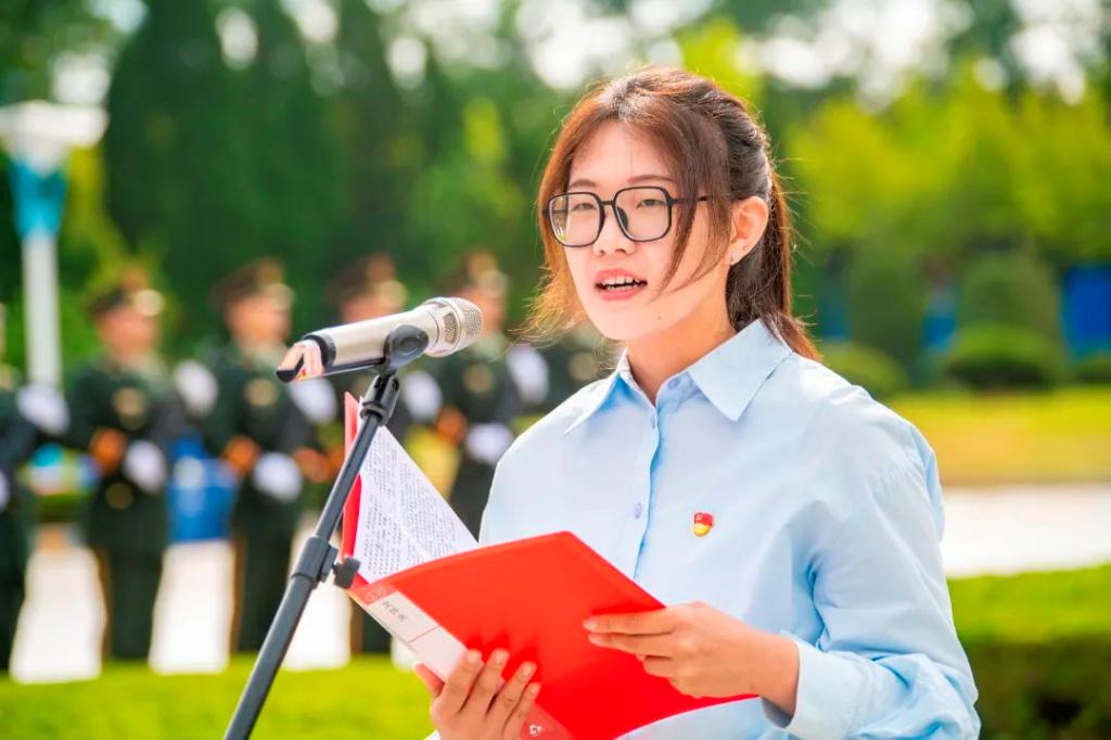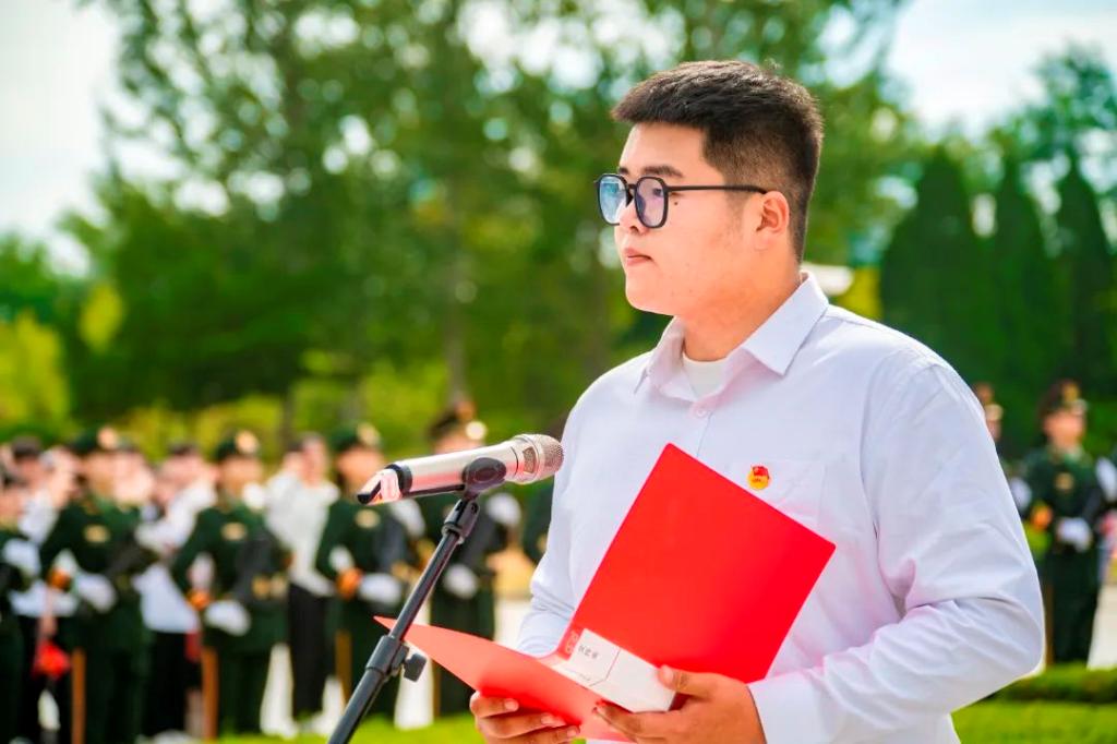 2020级高分子材料与工程专业马晓宇同学带领现场学生代表在鲜艳的五星红旗下庄严宣誓。
