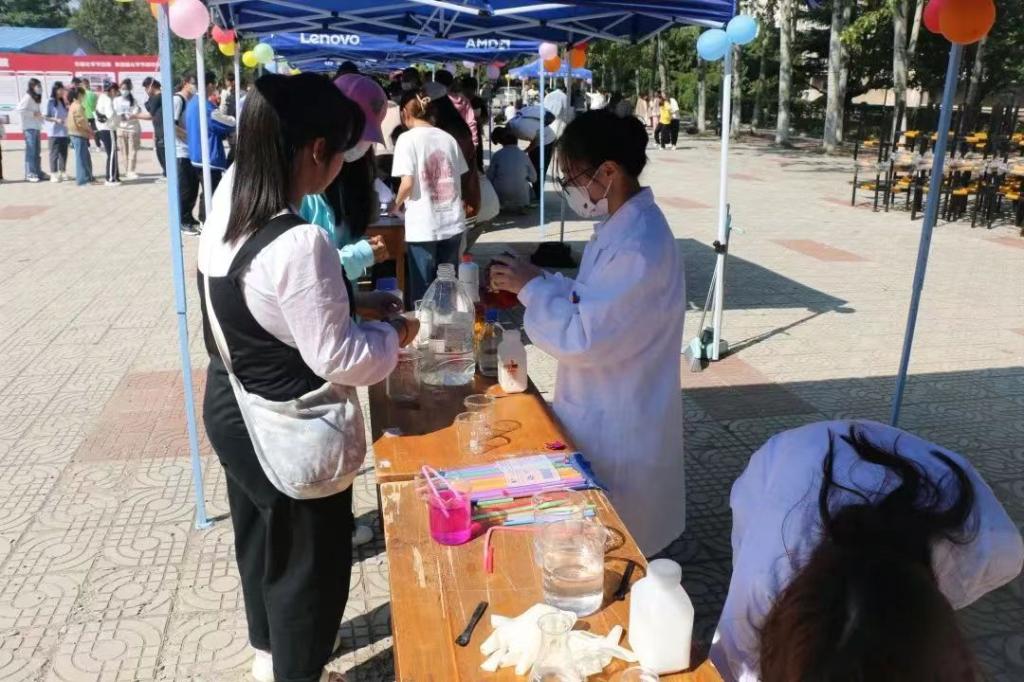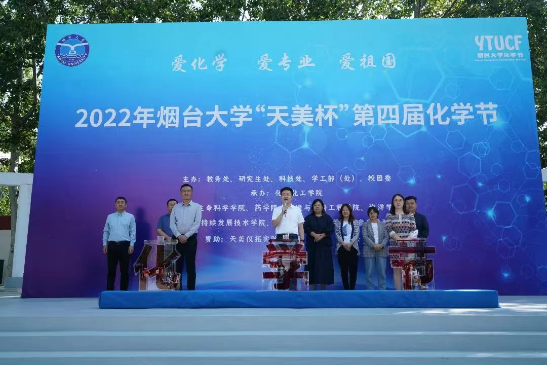 院长李文佐、学工部(处)副处长范俊卿、天美仪拓实验室设备(上海)有限公司市场部经理孙鹏宇,共同向装有无色酚酞试剂的“化学节”字体容器中倒入无色氢氧化钠溶液来为化学节揭幕,“化学节”字体容器瞬间由无色变为红色。李文佐院长宣布2022年色情小说