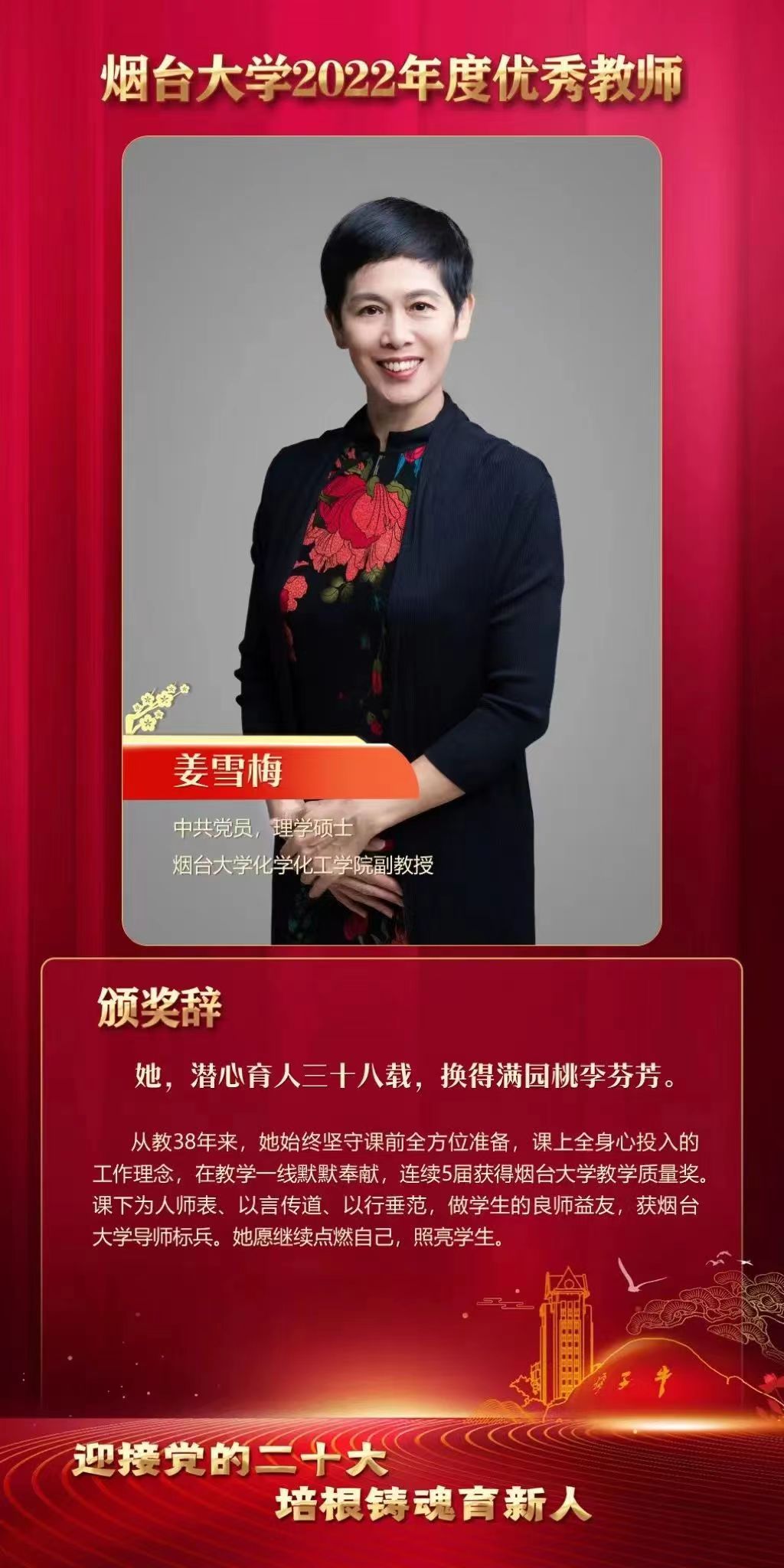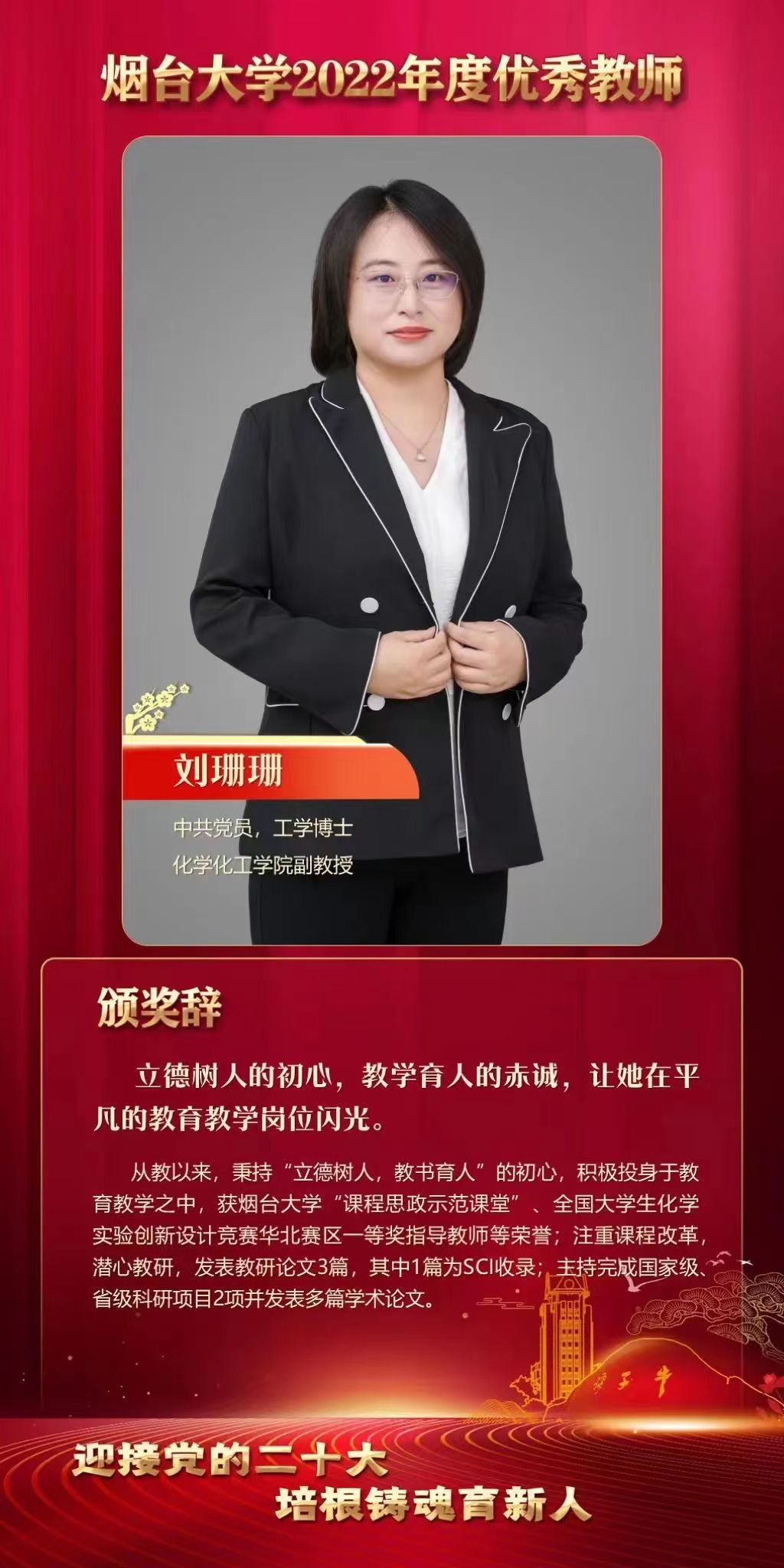 2022年,学校评选表彰了36名优秀教师、15名优秀教育工作者。其中,化院姜雪梅、刁屾、刘珊珊三位老师获评色情小说