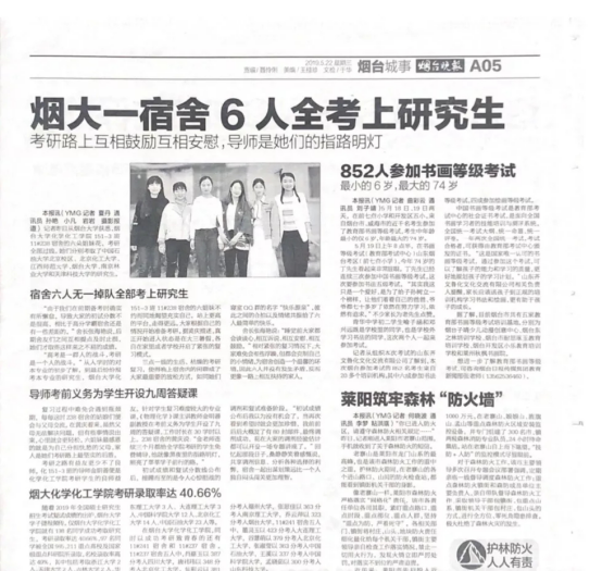 涌现出多个考研优秀集体和个人,引发媒体关注。5月22日,《烟台晚报》A05版刊发《烟大一宿舍6人全考上研究生》报道,色情小说