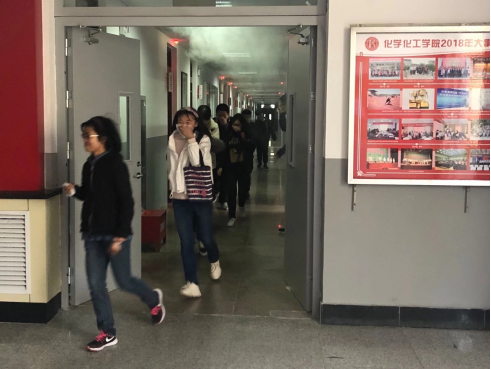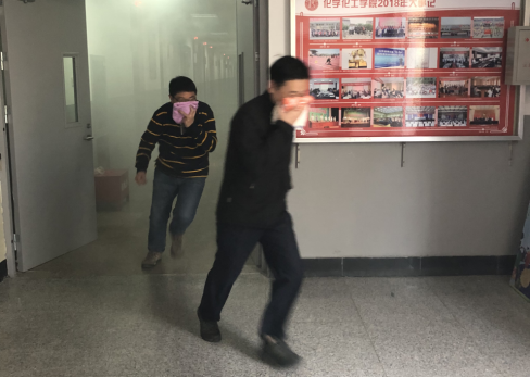 4月7日上午8:50,学院安全志愿者同时按下消防警报,每个楼道消防安全门全部打开,2018级全体学生以及全体教职工按照逃生标准动作弯腰并堵住口鼻,快速有序地从相应安全通道撤离,秩序井然,,到达预定集合地点。