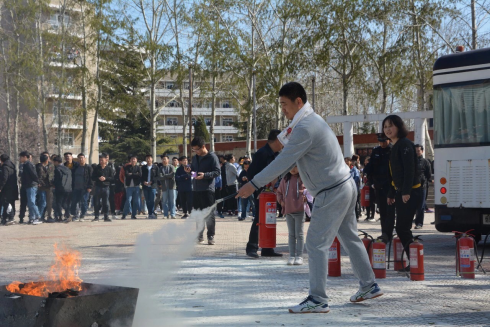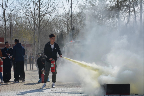 上午8:53,三分钟内,所有参加应急疏散的同学和老师们安全在院馆门前集合。随后,各班核点人数,转移至青春广场进行灭火技能培训,同学们在学校保卫处老师的指导和演示下进行灭火器使用演练。全体老师、各班安全志愿者以及男女代表积极参与灭火演练,每个人亲自动手,在实际操作中练习灭火器的使用方法,通过实战演练真正将此项安全技能熟稔于心。