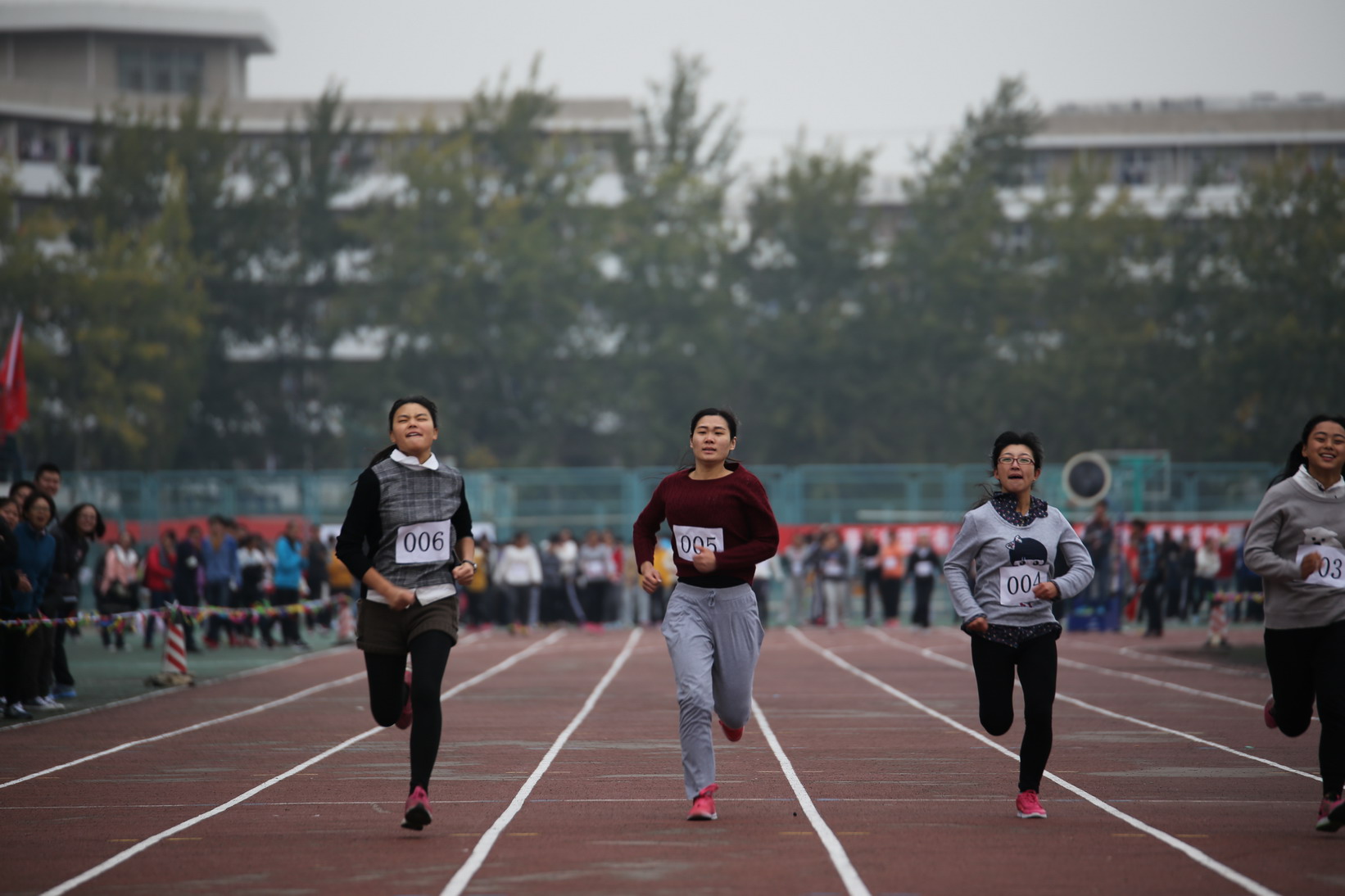 运动会包括田径、趣味竞赛等十几个比赛项目,分为教工组和学生组开展比赛,教工组比赛以两人三足接力赛、毛毛虫竞速、步步为营等集体趣味性项目为主,学生组则在田径类项目的基础上增加了仰卧起坐、引体向上等体质健康测试项目和绑腿跑、8X50接力等融竞技性和趣味性于一体的集体项目。运动场上,师生们热情高涨,会场气氛活跃。老师们投入地享受着比赛过程,默契的配合、执着的坚持、必胜的信心,各个教研室的老师都使出浑身解数争取最好成绩,赛场上充满了加油声、呐喊声和欢快的笑声。学生们更是不甘示弱,赛场上奋勇争先,观众席上阵阵呐喊,他们用自己拼搏和激情诠释着青春的力量。比赛中最具吸引力的是班级导师和同学一起组成的8×50米的接力赛,同学们奋勇拼搏,导师们更是竭尽全力,比赛让每一位在场的师生都感受到了师生间深厚的情谊和班级强大的凝聚力。