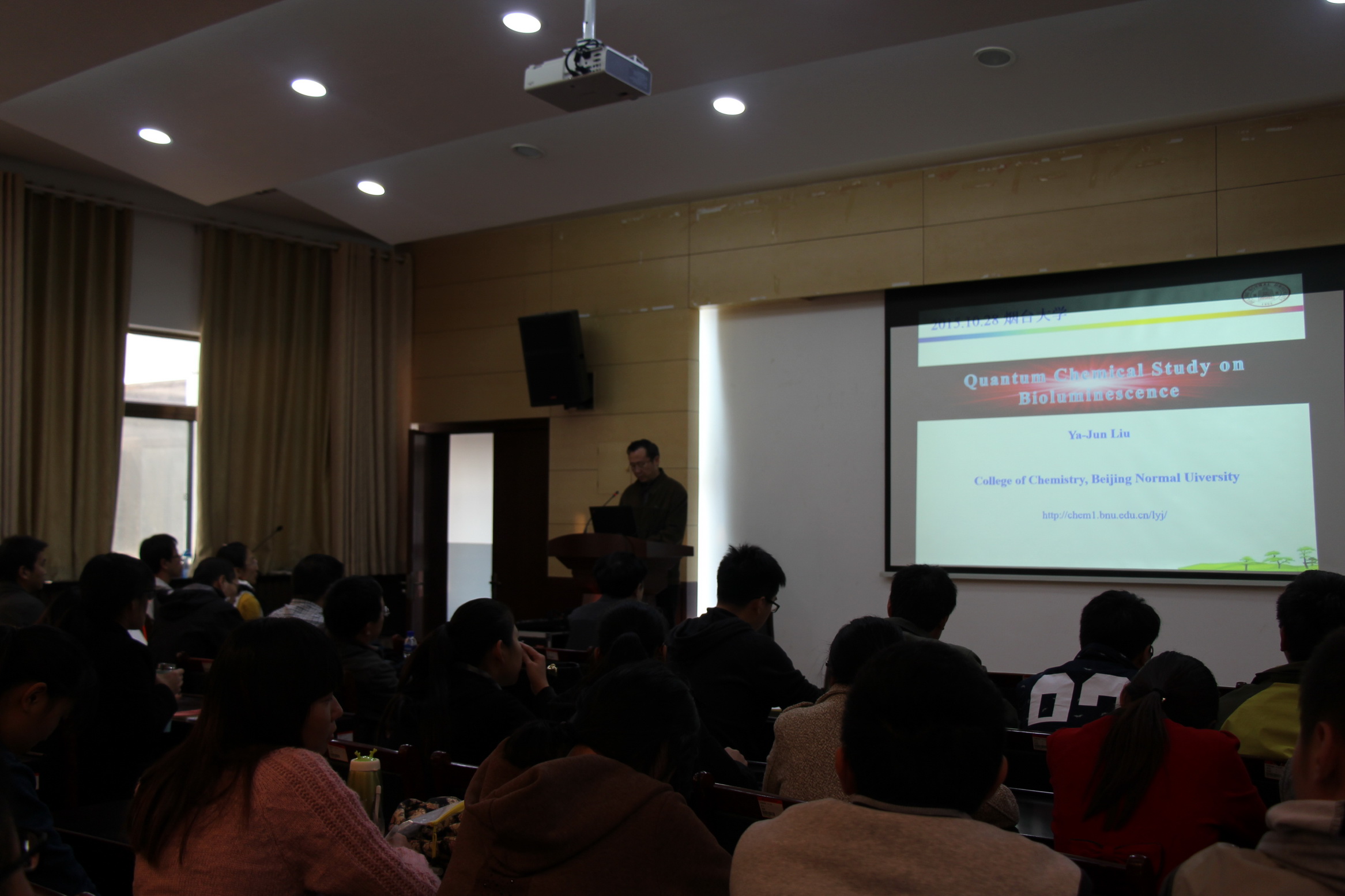 10 28 下午 4:00 北京师范大学化学学院刘亚军教授应色情小说 邀请,在新化馆三楼会议室做学术报告。报告题目为 Quantum Chemical Study on Bioluminescence ,色情小说 部分教师和全体硕士研究生参加。院党委书记邬旭然主持报告会。