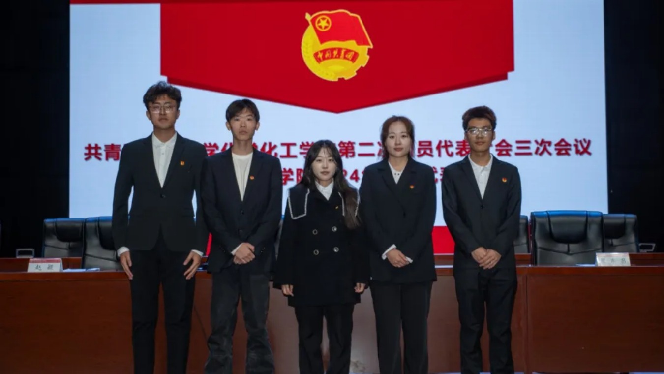 张成友老师宣布新一届化院团委委员名单、学代会常委(研究生会、本科学生会主席团)名单。刘振兴同学代表新一届院团委委员上台发言,他表示将继续团结带领广大团员青年,为建设“有思想引领、有组织保障、有教育理念、有服务意识、有文化气息、有精神追求”的“六有”共青团而奋斗。李光耀同学代表新一届院研究生会上台发言。他强调研究生会将秉持“我为同学办实事”的宗旨,从加强思想建设、完善自身建设、推动科技创新、丰富文体活动、助力科研学术以及促进创新创业与就业指导等方面,凝聚全体研究生的力量,为学院和学校的繁荣发展贡献力量。吕晓毅同学代表新一届院本科学生会上台发言。她表明化院本科学生会将不断加强自身理论建设、完善规章制度、密切联系各级学生组织、培养团队精神、认真做好日常工作和活动创新,在院党委领导和院团委指导下,紧扣时代脉搏,服务好广大青年学生,发扬优良传统,团结合作,为同学们提供更多展现自我的平台。